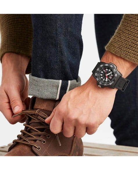 Мужские наручные часы Luminox XS.3501.F из коллекции Navy SEAL сочетают в себе спортивный дизайн и надежность швейцарского качества . Модель обладает круглым корпусом диаметром 45 мм, изготовленным из карбонаКарбонОт «carbon», «carbone» - углерод, углепластик - полимерный композиционный материал из переплетённых под определенным углом между собой нитей углеродного волокна, применяется для изготовления лёгких, но прочных деталей. В часах часто используют для украшения циферблатов и ремешков. Так же карбон используется в изготовлении корпусов. Такие корпуса обладают антикоррозионным свойством, не поддаются электромагнитному излучению, обладают повышенной прочностью и противоударностью. (CARBONOX™), что обеспечивает высокую устойчивость к внешним воздействиям при сохранении легкости . Циферблат черного цвета украшен контрастными метками и стрелками с , гарантирующим постоянную видимость времени даже в условиях низкой освещенности благодаря системе LLTLLTLLT — это автономный механизм подсветки, основанный на использовании микроскопических газонаполненных элементов. Специальные герметичные капсулы из боросиликатного стекла, интегрированные в циферблат, генерируют свечение без необходимости подключения к внешним источникам энергии. Для их работы не требуется ни дополнительный свет, ни механическое воздействие (например, нажатие кнопки). Свечение возникает благодаря химическому процессу: реакция между тритием, заключенным в капсулах, и люминофорным покрытием создает стабильное автономное освещение. Технология обеспечивает энергетическую независимость и долговечность подсветки. (микрогазовые огни) . Часы оснащены кварцевым механизмом швейцарского производства Ronda 715, обеспечивающим точность хода ±15 секунд в месяц . Защиту циферблата обеспечивает прочное минеральное стеклоМинеральное стеклоМинеральное стекло представляет собой искусственно выращенный минерал кварца. Такое стекло отличается особой устойчивостью к повреждениям и царапинам. Уступает по некоторым качествам сапфировому стеклу. с антибликовым покрытиемАнтибликовое покрытиеСлой оксида металла в 0,13-0,3 микрон, благодаря которому стекло часов не бликует и не отражает свет. Антибликовое покрытие уменьшает отражение света в 10 раз, обеспечивая отличную читаемость показателей циферблата., устойчивое к царапинам и механическим повреждениям . Водонепроницаемость модели достигает 20 атмосфер (200 метров), что делает их подходящими для плавания и активного отдыха на воде, включая дайвинг . Модель также оснащена безелемБезельВнешний ободок, закрепляющий стекло. В спортивных часах так называется поворотное кольцо с делениями на циферблате, выполняет роль таймера – замеряет отрезки времени на шкале. Неподвижный безель – элемент декора. Однонаправленно вращающийся безель на дайверских часах позволяет фиксировать моменты погружения и выныривания на поверхность. с односторонним вращением, что добавляет функциональности при использовании в водных условиях . Ремешок выполнен из черного полиуретана, что обеспечивает комфортное ношение в течение дня и удобство в уходе . Дополнительно часы имеют окно даты в положении «3 часа», что делает их практичными для повседневного использования .