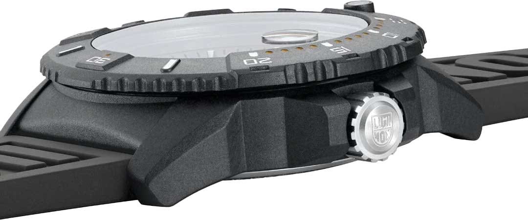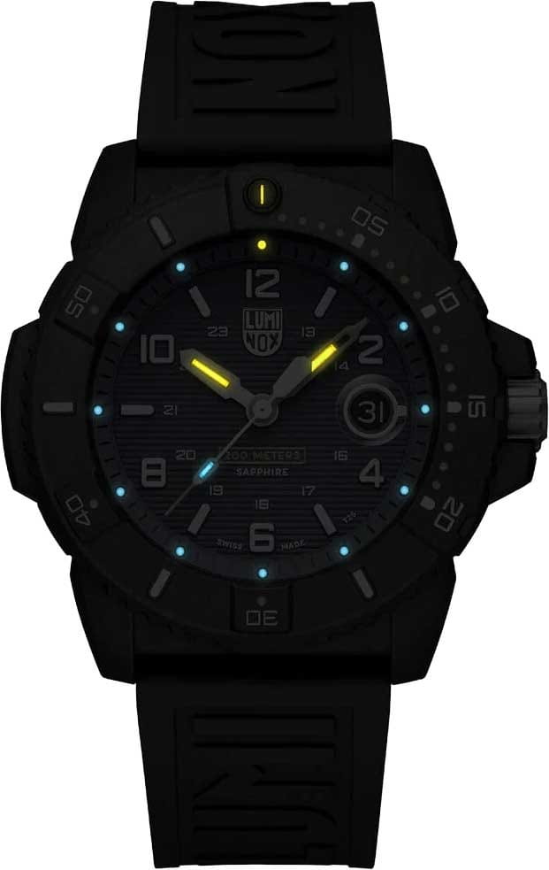 Швейцарские кварцевые часы Luminox XS.3602.NSF идеально сочетают в себе современный стиль и надежность. Благодаря корпусу из пластика, усиленного прессованным карбономКарбонОт «carbon», «carbone» - углерод, углепластик - полимерный композиционный материал из переплетённых под определенным углом между собой нитей углеродного волокна, применяется для изготовления лёгких, но прочных деталей. В часах часто используют для украшения циферблатов и ремешков. Так же карбон используется в изготовлении корпусов. Такие корпуса обладают антикоррозионным свойством, не поддаются электромагнитному излучению, обладают повышенной прочностью и противоударностью., они отличаются прочностью и малым весом. Синий циферблат подчеркивает спортивный дизайн модели, а каучуковый ремешок с раскладной застёжкойРаскладная застёжкаТакой тип застёжки используется только на браслетах из металла. Она никогда не раскрывается полностью, происходит разделение на 2 и более частей. Раскладывающая застёжка снизит вероятность потери часов к минимуму. обеспечивает комфорт при носке. Часы обладают водозащитой на глубине до 200 метров, что делает их идеальным выбором для любителей водных видов спорта. LLTLLTLLT — это автономный механизм подсветки, основанный на использовании микроскопических газонаполненных элементов. Специальные герметичные капсулы из боросиликатного стекла, интегрированные в циферблат, генерируют свечение без необходимости подключения к внешним источникам энергии. Для их работы не требуется ни дополнительный свет, ни механическое воздействие (например, нажатие кнопки). Свечение возникает благодаря химическому процессу: реакция между тритием, заключенным в капсулах, и люминофорным покрытием создает стабильное автономное освещение. Технология обеспечивает энергетическую независимость и долговечность подсветки.-подсветка гарантирует отличную видимость в темное время суток, а сапфировое стеклоСапфировое стеклоПрочный и надёжный материал из кристалла сапфира синтетического происхождения, характеризующийся особой твёрдостью и устойчивостью к царапинам и повреждениям. с антибликовым покрытиемАнтибликовое покрытиеСлой оксида металла в 0,13-0,3 микрон, благодаря которому стекло часов не бликует и не отражает свет. Антибликовое покрытие уменьшает отражение света в 10 раз, обеспечивая отличную читаемость показателей циферблата. защищает от царапин и обеспечивает четкость отображения. Модель оснащена функцией календаря с окошком даты, дополненным увеличительным стеклом для удобства использования. Часы поддерживают 12-ти и 24-х часовой формат времени, а вращающийся в одном направлении безельБезельВнешний ободок, закрепляющий стекло. В спортивных часах так называется поворотное кольцо с делениями на циферблате, выполняет роль таймера – замеряет отрезки времени на шкале. Неподвижный безель – элемент декора. Однонаправленно вращающийся безель на дайверских часах позволяет фиксировать моменты погружения и выныривания на поверхность. позволяет отслеживать время погружения или других активностей. Задняя крышка и заводная головка выполнены из стали, что добавляет дополнительную прочность конструкции. Заводная головка с защитой предотвращает случайное изменение времени. Благодаря диаметру в 45 мм и толщине 14 мм, эти часы обладают внушительным 