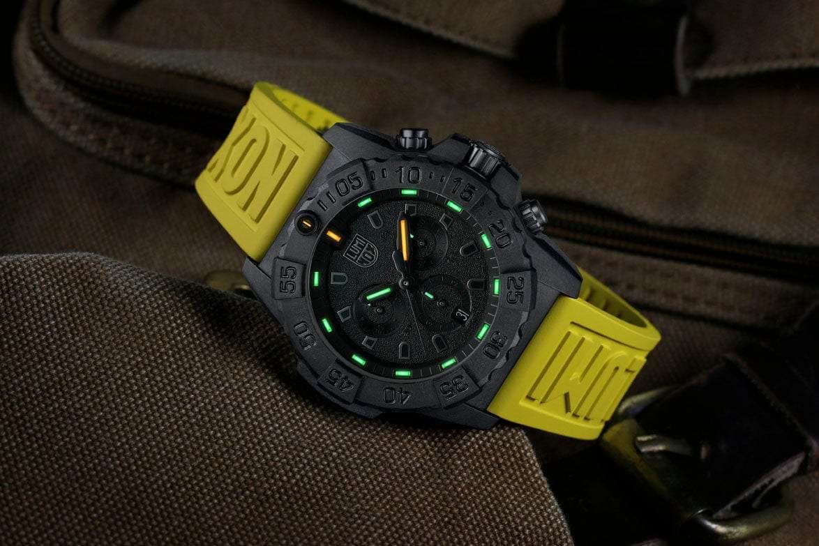 Часы Luminox XS.CE81.BO — это надежные и стильные швейцарские часы с кварцевым механизмом, оснащенные калибром Ronda 5030.D. Корпус выполнен из пластика, усиленного прессованным карбоном CARBONOX, что обеспечивает прочность и долговечность. Черный циферблат защищен минеральным стекломМинеральное стеклоМинеральное стекло представляет собой искусственно выращенный минерал кварца. Такое стекло отличается особой устойчивостью к повреждениям и царапинам. Уступает по некоторым качествам сапфировому стеклу. повышенной прочности, что делает его устойчивым к царапинам и ударам. Каучуковый ремешок желтого цвета с раскладной застёжкойРаскладная застёжкаТакой тип застёжки используется только на браслетах из металла. Она никогда не раскрывается полностью, происходит разделение на 2 и более частей. Раскладывающая застёжка снизит вероятность потери часов к минимуму. обеспечивает комфортное ношение и надежность фиксации на запястье. Эти часы обладают впечатляющим уровнем водозащиты до 200 метров, что делает их подходящими для водных видов спорта и активного отдыха. Светящаяся метка на безелеБезельВнешний ободок, закрепляющий стекло. В спортивных часах так называется поворотное кольцо с делениями на циферблате, выполняет роль таймера – замеряет отрезки времени на шкале. Неподвижный безель – элемент декора. Однонаправленно вращающийся безель на дайверских часах позволяет фиксировать моменты погружения и выныривания на поверхность., который вращается в одном направлении, добавляет функциональности и удобства, особенно в условиях низкой освещенности. Технология LLTLLTLLT — это автономный механизм подсветки, основанный на использовании микроскопических газонаполненных элементов. Специальные герметичные капсулы из боросиликатного стекла, интегрированные в циферблат, генерируют свечение без необходимости подключения к внешним источникам энергии. Для их работы не требуется ни дополнительный свет, ни механическое воздействие (например, нажатие кнопки). Свечение возникает благодаря химическому процессу: реакция между тритием, заключенным в капсулах, и люминофорным покрытием создает стабильное автономное освещение. Технология обеспечивает энергетическую независимость и долговечность подсветки.-подсветки обеспечивает отличную видимость в темноте на протяжении 25 лет, позволяя контролировать время даже при полном отсутствии света. Часы-хронографХронографФункция позволяет измерять отрезки времени с особой точностью: часы, минуты, секунды. Верным признаком хронографа является наличие на циферблате 3 дополнительных окошек-счётчиков. обладают функцией секундомераСекундомерСекундоме́р — прибор, способный измерять интервалы времени с точностью до долей секунды. и поддерживают 12- и 24-часовой формат времени и календаря, что делает их практичными в использовании. Заводная головка снабжена защитой и двойной уплотнительной прокладкой для обеспечения герметичности, а задняя крышка крепится на винтах для дополнительной надежности.