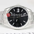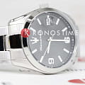 Черный циферблат украшен серебристыми часовыми метками и стрелками с люминесцентным покрытиемЛюминесцентное покрытиеПозволяет считывать показания времени в темноте. Производители наносят на стрелки, часовые индексы, безель или поверхность циферблата светонакопительный состав, дающий холодное свечение., которое улучшает читаемость в условиях низкой освещенности. На отметке "3 часа" расположено окошко датыВечный календарьКлассическое часовое усложнение, представляющее собой календарь, рассчитанный на несколько лет вперёд (стандартно – до 2099 года). Определяет текущую дату, день недели, месяц., добавляющее практичности.