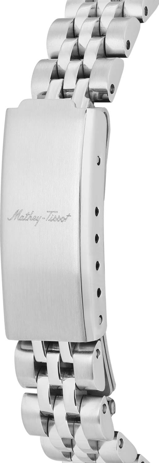 Женские кварцевые часы Mathey-Tissot Mathy D810APU — это стильное сочетание элегантности и современного дизайна. Изящный корпус выполнен из нержавеющей стали, диаметром 30 мм, что придаст образу женственности и романтизма. Изысканный циферблат с метками в виде точек украшены кристаллами, что придает модели особый блеск. Циферблат защищен минеральным стекломМинеральное стеклоМинеральное стекло представляет собой искусственно выращенный минерал кварца. Такое стекло отличается особой устойчивостью к повреждениям и царапинам. Уступает по некоторым качествам сапфировому стеклу., обеспечивающий устойчивость к царапинам. Стрелки с люминесцентным покрытиемЛюминесцентное покрытиеПозволяет считывать показания времени в темноте. Производители наносят на стрелки, часовые индексы, безель или поверхность циферблата светонакопительный состав, дающий холодное свечение.. Окошко даты находится в положении 3 часа. Часы оснащены надежным кварцевым механизмом. Стальной браслет на раскладной застёжкеРаскладная застёжкаТакой тип застёжки используется только на браслетах из металла. Она никогда не раскрывается полностью, происходит разделение на 2 и более частей. Раскладывающая застёжка снизит вероятность потери часов к минимуму., гарантирует комфортное и безопасное ношение. Класс водозащиты: 50 метров позволит защитить корпус от случайных брызг или капель дождя. Mathey-Tissot — отличный выбор для тех, кто ценит утонченность и качество.