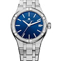Мужские швейцарские кварцевые часы Maurice Lacroix Aikon Quartz AI1106-SS002-430-1. Сапфировое стеклоСапфировое стеклоПрочный и надёжный материал из кристалла сапфира синтетического происхождения, характеризующийся особой твёрдостью и устойчивостью к царапинам и повреждениям. устойчивое к появлению царапин, обладающее высокой прозрачностью. Синий циферблат. Стрелки с люминесцентным покрытиемЛюминесцентное покрытиеПозволяет считывать показания времени в темноте. Производители наносят на стрелки, часовые индексы, безель или поверхность циферблата светонакопительный состав, дающий холодное свечение.. Класс водозащиты: 100 метров, позволит плавать, нырять и заниматься другими водными видами спорта. Окошко даты находится в положении 3 часов. Корпус и браслет часов изготовлены из стали. Браслет с застёжкой «бабочка» с кнопкамиЗастёжка "бабочка"Такой вид застёжки дополняется предохранителями, помогающими избежать случайного раскрытия браслета. Обладают изящным исполнением. .