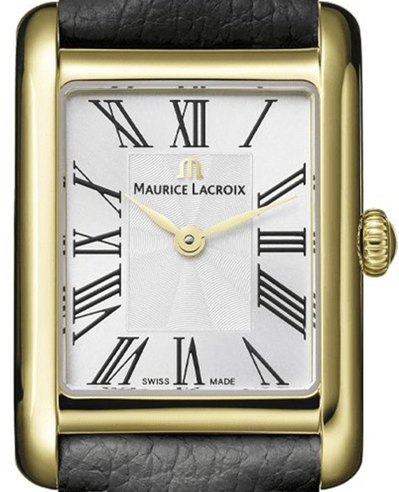 Женские кварцевые часы Maurice Lacroix Fiaba Square FFA1205-PVY01-110-2 — это изысканный аксессуар, вдохновлённый сказками и создающий образ элегантной современной женщины. Модель выполнена в прямоугольной форме из нержавеющей стали с размерами 24x34 мм и толщиной 6,5 мм, что делает её утончённой и лаконичной. Циферблат серебристого цвета дополнен центральным гильошированным рисунком «flinque», а его поверхность защищена сапфировым стекломСапфировое стеклоПрочный и надёжный материал из кристалла сапфира синтетического происхождения, характеризующийся особой твёрдостью и устойчивостью к царапинам и повреждениям. с двусторонним антибликовым покрытиемАнтибликовое покрытиеСлой оксида металла в 0,13-0,3 микрон, благодаря которому стекло часов не бликует и не отражает свет. Антибликовое покрытие уменьшает отражение света в 10 раз, обеспечивая отличную читаемость показателей циферблата., устойчивым к повреждениям. Римские цифры черного цвета и стрелки с алмазной огранкой имеют PVD-покрытиеPVDУльтратонкое покрытие наносится в технике вакуумного напыления, сочетает в себе нитрид титана особой прочности со слоем золота или оксида хрома. Несёт в себе декоративную или защитную функцию. цвета желтого золота, подчёркивая изысканность дизайна. Часы оснащены швейцарским кварцевым механизмом, обеспечивающим точную работу и минимальное обслуживание. Погрешность хода не превышает -10/+20 секунд в месяц. Браслет из чёрной кожи шириной 18 мм оснащён стандартной застёжкой из нержавеющей стали с PVD-покрытием цвета желтого золота, обеспечивающей комфорт и надёжную фиксацию на запястье. Система быстрой замены ремешка позволяет легко менять его по желанию. Водонепроницаемость позволяет использовать модель при мытье рук или под лёгким дождём. Гарантия 2 года подтверждает качество и долговечность изделия. Эти часы станут универсальным аксессуаром для тех, кто ценит сочетание стиля, функциональности и швейцарского мастерства — идеальный выбор для вечерних выходов и торжественных случаев.