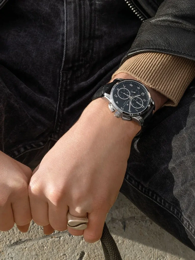 Мужские швейцарские механические часы c хронографомХронографФункция позволяет измерять отрезки времени с особой точностью: часы, минуты, секунды. Верным признаком хронографа является наличие на циферблате 3 дополнительных окошек-счётчиков. Maurice Lacroix Pontos Chronograph PT6388-SS001-320-2, механический механизм (автоматический калибр) с высокой точностью. Сапфировое стеклоСапфировое стеклоПрочный и надёжный материал из кристалла сапфира синтетического происхождения, характеризующийся особой твёрдостью и устойчивостью к царапинам и повреждениям. устойчивое к появлению царапин, обладающее высокой прозрачностью. Класс водозащиты: 100 метров, позволит плавать, нырять и заниматься другими водными видами спорта. Корпус часов изготовлен из стали. Стрелки с люминесцентным покрытиемЛюминесцентное покрытиеПозволяет считывать показания времени в темноте. Производители наносят на стрелки, часовые индексы, безель или поверхность циферблата светонакопительный состав, дающий холодное свечение.. Кожаный ремешок на застёжке «бабочка» с кнопкамиЗастёжка "бабочка"Такой вид застёжки дополняется предохранителями, помогающими избежать случайного раскрытия браслета. Обладают изящным исполнением. . СекундомерСекундомерСекундоме́р — прибор, способный измерять интервалы времени с точностью до долей секунды.. Окошко даты находится в положении 6 часов.