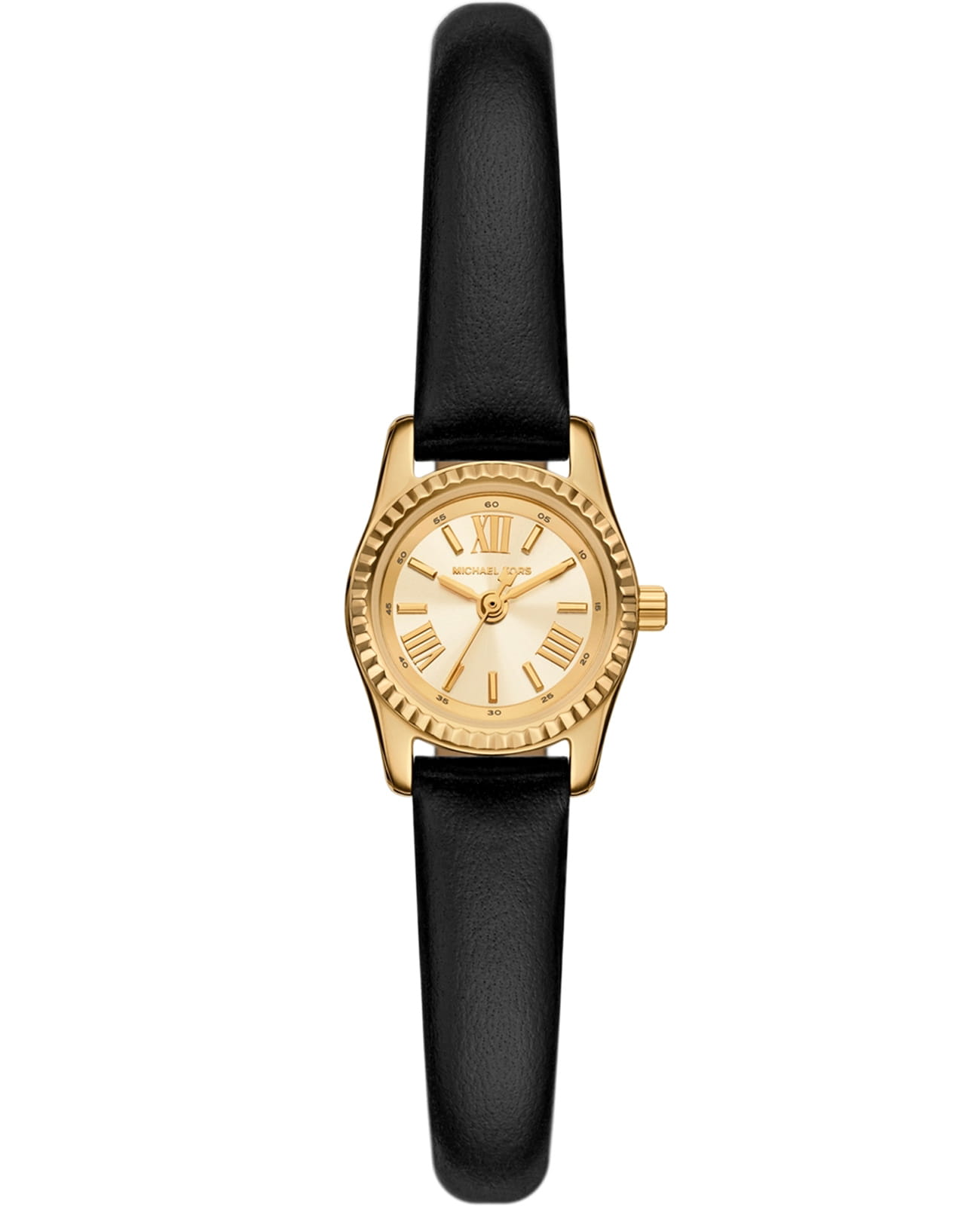 Женские американские часы Michael Kors Lexington MK4901 имеют кварцевый механизм с высокой точностью. Корпус часов изготовлен из нержавеющей стали с PVD-покрытиемPVDУльтратонкое покрытие наносится в технике вакуумного напыления, сочетает в себе нитрид титана особой прочности со слоем золота или оксида хрома. Несёт в себе декоративную или защитную функцию. золотистого цвета, диаметром 19 мм. Циферблат с метками в виде римских цифр защищен минеральным стекломМинеральное стеклоМинеральное стекло представляет собой искусственно выращенный минерал кварца. Такое стекло отличается особой устойчивостью к повреждениям и царапинам. Уступает по некоторым качествам сапфировому стеклу., что обеспечивает надежную защиту от царапин и повреждений. Неподвижный рифленый безельБезельВнешний ободок, закрепляющий стекло. В спортивных часах так называется поворотное кольцо с делениями на циферблате, выполняет роль таймера – замеряет отрезки времени на шкале. Неподвижный безель – элемент декора. Однонаправленно вращающийся безель на дайверских часах позволяет фиксировать моменты погружения и выныривания на поверхность.. Класс водозащиты: 50 метров позволит защитить корпус от случайных брызг или капель дождя. Удобный кожаный ремешок с фирменным рисунком и классической застежкой обеспечивает надежную фиксацию на запястье и легкость в надевании и снятии. Эти часы станут отличным дополнением к любому наряду, подчеркивая индивидуальность и стиль их обладательницы. Идеальный аксессуар, который придаст женскому образу завершенность и особый шарм.