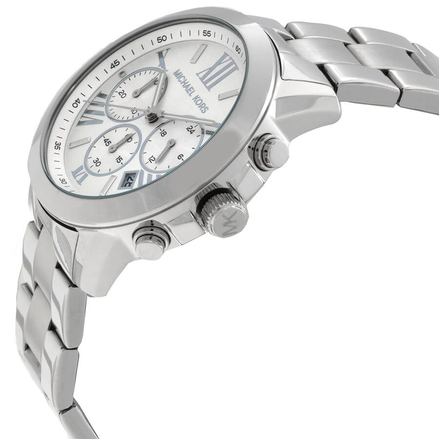 Откройте для себя сочетание современного стиля и функциональности в часах Michael Kors Brynn MK6731 — потрясающие серебряные часы-хронографХронографФункция позволяет измерять отрезки времени с особой точностью: часы, минуты, секунды. Верным признаком хронографа является наличие на циферблате 3 дополнительных окошек-счётчиков. с секундомеромСекундомерСекундоме́р — прибор, способный измерять интервалы времени с точностью до долей секунды., созданные для женщин, которые ценят изысканность и утонченность. Эти часы легко дополнят любой образ и станут идеальным аксессуаром как для повседневного, так и для официального мероприятия. Кварцевый механизм с высокой точностью. Корпус часов изготовлен из нержавеющей стали, диаметром 40 мм. Циферблат с метками в виде римских цифр защищен минеральным стекломМинеральное стеклоМинеральное стекло представляет собой искусственно выращенный минерал кварца. Такое стекло отличается особой устойчивостью к повреждениям и царапинам. Уступает по некоторым качествам сапфировому стеклу., что обеспечивает надежную защиту от царапин и повреждений. Стрелки с люминесцентным покрытиемЛюминесцентное покрытиеПозволяет считывать показания времени в темноте. Производители наносят на стрелки, часовые индексы, безель или поверхность циферблата светонакопительный состав, дающий холодное свечение.. Отображение даты между 4 и 5 часами. Класс водозащиты: 100 метров позволит плавать, нырять и заниматься другими водными видами спорта. Удобный стальной браслет на раскладной застёжкеРаскладная застёжкаТакой тип застёжки используется только на браслетах из металла. Она никогда не раскрывается полностью, происходит разделение на 2 и более частей. Раскладывающая застёжка снизит вероятность потери часов к минимуму. обеспечивает надежную фиксацию на запястье и легкость в надевании и снятии. Отображение даты, дня недели и 24-часовой формат времени для удобства планирования. Клиновидные стрелки в стиле Dauphine. Рифленая заводная головка.