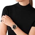 Женские американские часы-хронографХронографФункция позволяет измерять отрезки времени с особой точностью: часы, минуты, секунды. Верным признаком хронографа является наличие на циферблате 3 дополнительных окошек-счётчиков. с секундомеромСекундомерСекундоме́р — прибор, способный измерять интервалы времени с точностью до долей секунды. и с минеральным стекломМинеральное стеклоМинеральное стекло представляет собой искусственно выращенный минерал кварца. Такое стекло отличается особой устойчивостью к повреждениям и царапинам. Уступает по некоторым качествам сапфировому стеклу. Michael Kors Everest MK7209, кварцевый механизм с высокой точностью. Корпус часов изготовлен из нержавеющей стали. БезельБезельВнешний ободок, закрепляющий стекло. В спортивных часах так называется поворотное кольцо с делениями на циферблате, выполняет роль таймера – замеряет отрезки времени на шкале. Неподвижный безель – элемент декора. Однонаправленно вращающийся безель на дайверских часах позволяет фиксировать моменты погружения и выныривания на поверхность. с PVD-покрытиемPVDУльтратонкое покрытие наносится в технике вакуумного напыления, сочетает в себе нитрид титана особой прочности со слоем золота или оксида хрома. Несёт в себе декоративную или защитную функцию.украшен кристаллами. Циферблат выполнен по технологии Sunray (солнечные лучи). Три дополнительных индикатора. Метки в виде штрихов и римских цифр. Окошко даты находится между 4 и 5 часами. Стрелки с люминесцентным покрытиемЛюминесцентное покрытиеПозволяет считывать показания времени в темноте. Производители наносят на стрелки, часовые индексы, безель или поверхность циферблата светонакопительный состав, дающий холодное свечение.. Заводная головка с защитой. Класс водозащиты: 100 метров, позволит плавать, нырять и заниматься другими водными видами спорта. Стальной браслет с частичным PVD-покрытиемPVDУльтратонкое покрытие наносится в технике вакуумного напыления, сочетает в себе нитрид титана особой прочности со слоем золота или оксида хрома. Несёт в себе декоративную или защитную функцию. на раскладной застёжкеРаскладная застёжкаТакой тип застёжки используется только на браслетах из металла. Она никогда не раскрывается полностью, происходит разделение на 2 и более частей. Раскладывающая застёжка снизит вероятность потери часов к минимуму..