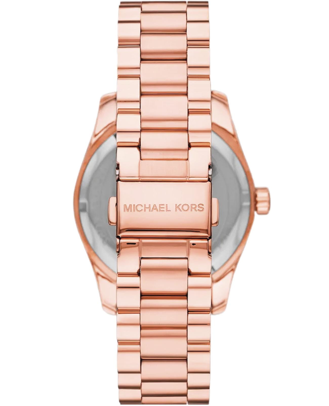 Женские американские часы с минеральным стекломМинеральное стеклоМинеральное стекло представляет собой искусственно выращенный минерал кварца. Такое стекло отличается особой устойчивостью к повреждениям и царапинам. Уступает по некоторым качествам сапфировому стеклу. Michael Kors Lexington MK7444, кварцевый механизм с высокой точностью. Корпус часов изготовлен из нержавеющей стали с PVD-покрытиемPVDУльтратонкое покрытие наносится в технике вакуумного напыления, сочетает в себе нитрид титана особой прочности со слоем золота или оксида хрома. Несёт в себе декоративную или защитную функцию.. БезельБезельВнешний ободок, закрепляющий стекло. В спортивных часах так называется поворотное кольцо с делениями на циферблате, выполняет роль таймера – замеряет отрезки времени на шкале. Неподвижный безель – элемент декора. Однонаправленно вращающийся безель на дайверских часах позволяет фиксировать моменты погружения и выныривания на поверхность. и циферблат украшены кристаллами. Класс водозащиты: 100 метров, позволит плавать, нырять и заниматься другими водными видами спорта. Стальной браслет из нержавеющей стали с PVD-покрытиемPVDУльтратонкое покрытие наносится в технике вакуумного напыления, сочетает в себе нитрид титана особой прочности со слоем золота или оксида хрома. Несёт в себе декоративную или защитную функцию. на раскладной застёжкеРаскладная застёжкаТакой тип застёжки используется только на браслетах из металла. Она никогда не раскрывается полностью, происходит разделение на 2 и более частей. Раскладывающая застёжка снизит вероятность потери часов к минимуму..