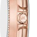 Откройте для себя сочетание современного стиля и функциональности в часах Michael Kors Maren MK7491 — потрясающих серебряных часах, созданных для женщин, которые ценят изысканность и утонченность. Эти часы легко дополнят любой образ и станут идеальным аксессуаром как для повседневного, так и для официального мероприятия. Кварцевый механизм с высокой точностью. Корпус часов изготовлен из нержавеющей стали с PVD-покрытиемPVDУльтратонкое покрытие наносится в технике вакуумного напыления, сочетает в себе нитрид титана особой прочности со слоем золота или оксида хрома. Несёт в себе декоративную или защитную функцию. цвета розового золота, диаметром 33 мм. БезельБезельВнешний ободок, закрепляющий стекло. В спортивных часах так называется поворотное кольцо с делениями на циферблате, выполняет роль таймера – замеряет отрезки времени на шкале. Неподвижный безель – элемент декора. Однонаправленно вращающийся безель на дайверских часах позволяет фиксировать моменты погружения и выныривания на поверхность. инкрустирован кристаллами. Циферблат с метками в виде штрихов и арабских цифр защищен минеральным стекломМинеральное стеклоМинеральное стекло представляет собой искусственно выращенный минерал кварца. Такое стекло отличается особой устойчивостью к повреждениям и царапинам. Уступает по некоторым качествам сапфировому стеклу., что обеспечивает надежную защиту от царапин и повреждений. Стрелки и метки с люминесцентным покрытиемЛюминесцентное покрытиеПозволяет считывать показания времени в темноте. Производители наносят на стрелки, часовые индексы, безель или поверхность циферблата светонакопительный состав, дающий холодное свечение.. Класс водозащиты: 50 метров позволит защитить корпус от случайных брызг или капель дождя. Удобный стальной браслет на раскладной застёжкеРаскладная застёжкаТакой тип застёжки используется только на браслетах из металла. Она никогда не раскрывается полностью, происходит разделение на 2 и более частей. Раскладывающая застёжка снизит вероятность потери часов к минимуму. обеспечивает надежную фиксацию на запястье и легкость в надевании и снятии. Рифленая заводная головка.