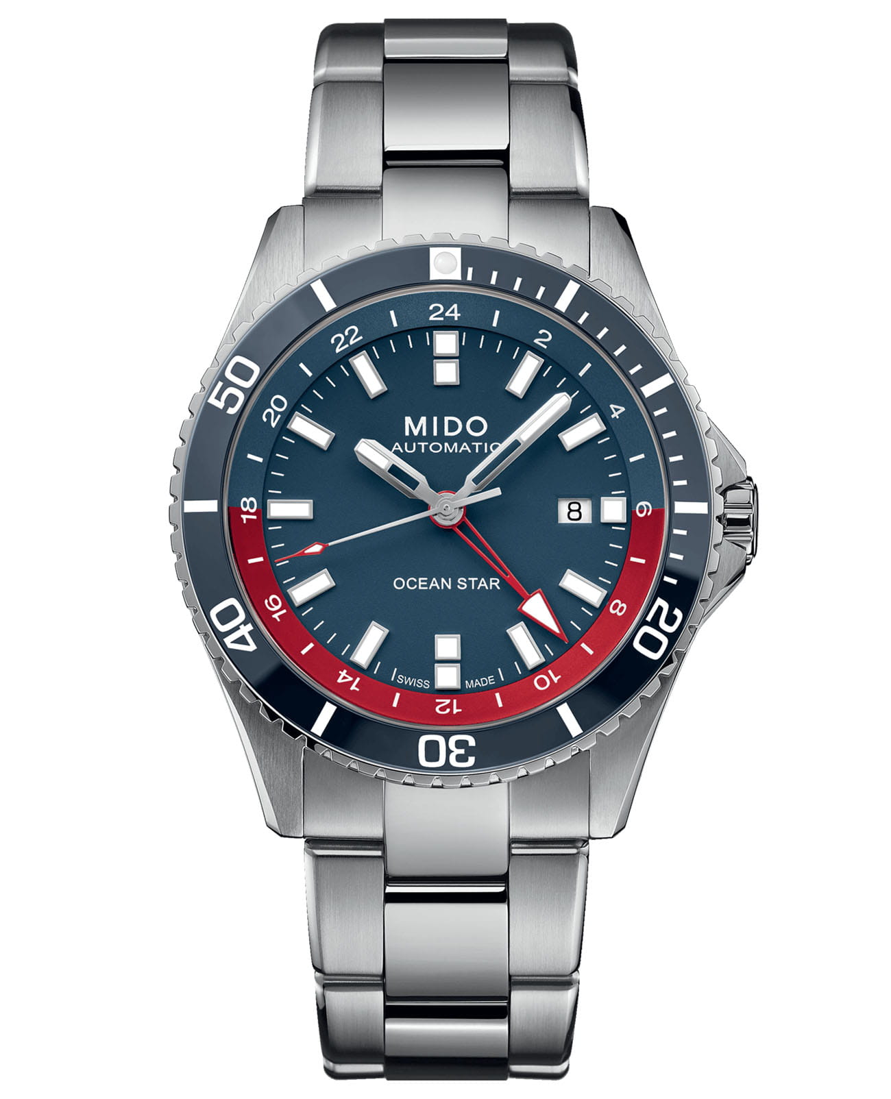Часы MIDO Ocean Star GMT (артикул M026.629.11.041.00) сочетают в себе элегантность и функциональность, идеально подходя для путешественников и любителей водных видов спорта. Корпус диаметром 44 мм выполнен из нержавеющей стали с керамическим безелем и водозащитой до 20 бар (200 метров). Завинчивающаяся заводная головка и накладные часовые метки, покрытые Super-LumiNova®Люминесцентное покрытиеПозволяет считывать показания времени в темноте. Производители наносят на стрелки, часовые индексы, безель или поверхность циферблата светонакопительный состав, дающий холодное свечение., обеспечивают надёжность и удобство. Циферблат синего цвета защищён сапфировым стекломСапфировое стеклоПрочный и надёжный материал из кристалла сапфира синтетического происхождения, характеризующийся особой твёрдостью и устойчивостью к царапинам и повреждениям. с двусторонним антибликовым покрытием.