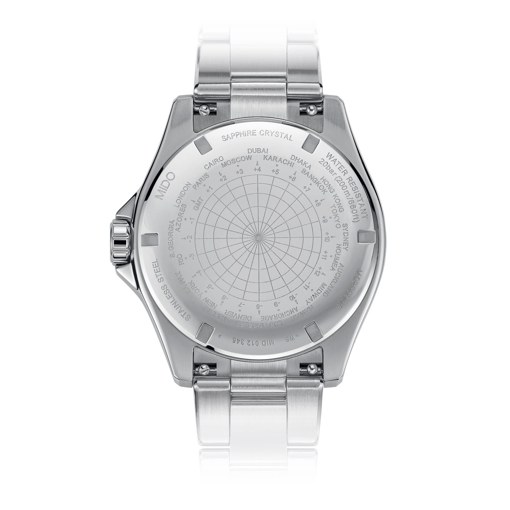 Модель оснащена автоматическим механизмом MIDO Caliber 80, обеспечивающим запас хода до 80 часов. Функционал включает индикацию часов, минут, секунд, даты в положении «3 часа» и второго часового пояса GMTGMTОтображение времени второго часового пояса.Такая функция особенно актуальна для путешественников и бизнесменов,которые общаются с людьми из разных стран,теперь вы всегда будете знать,какой час у вашего партнёра или близкого человека..