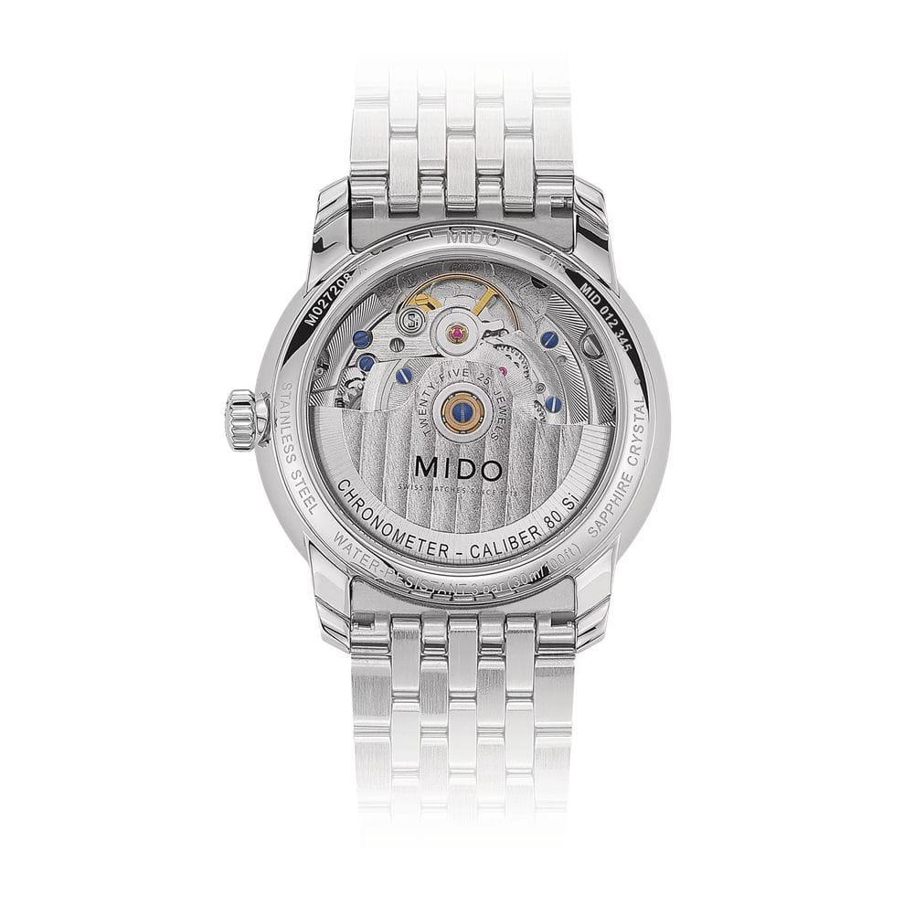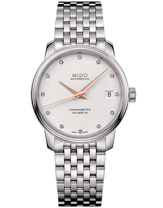 Mido Baroncelli Chronometer M027.208.11.036.00 — женские швейцарские часы, воплощающие гармонию классики и передовых технологий. Изящный корпус диаметром 33 мм выполнен из нержавеющей стали и органично сочетается с браслетом, подчеркивающим элегантность модели.