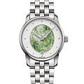 Женские швейцарские механические часы с сапфировым стеклом Mido Baroncelli Wild Stone M035.207.11.481.00, механический механизм (автоматический калибр) с высокой точностью. Особая интенсивность исходит от этих оригинальных женских часов благодаря Авантюрину, Тигровому глазу, Малахиту или Древесной яшме, украшающих центр их великолепных белых зернистых циферблатов. Сапфировое стекло устойчивое к появлению царапин, обладающее высокой прозрачностью. Класс водозащиты: 50 метров, позволит защитить корпус от случайных брызг или капель дождя. Корпус часов изготовлен из стали, серебристого цвета.