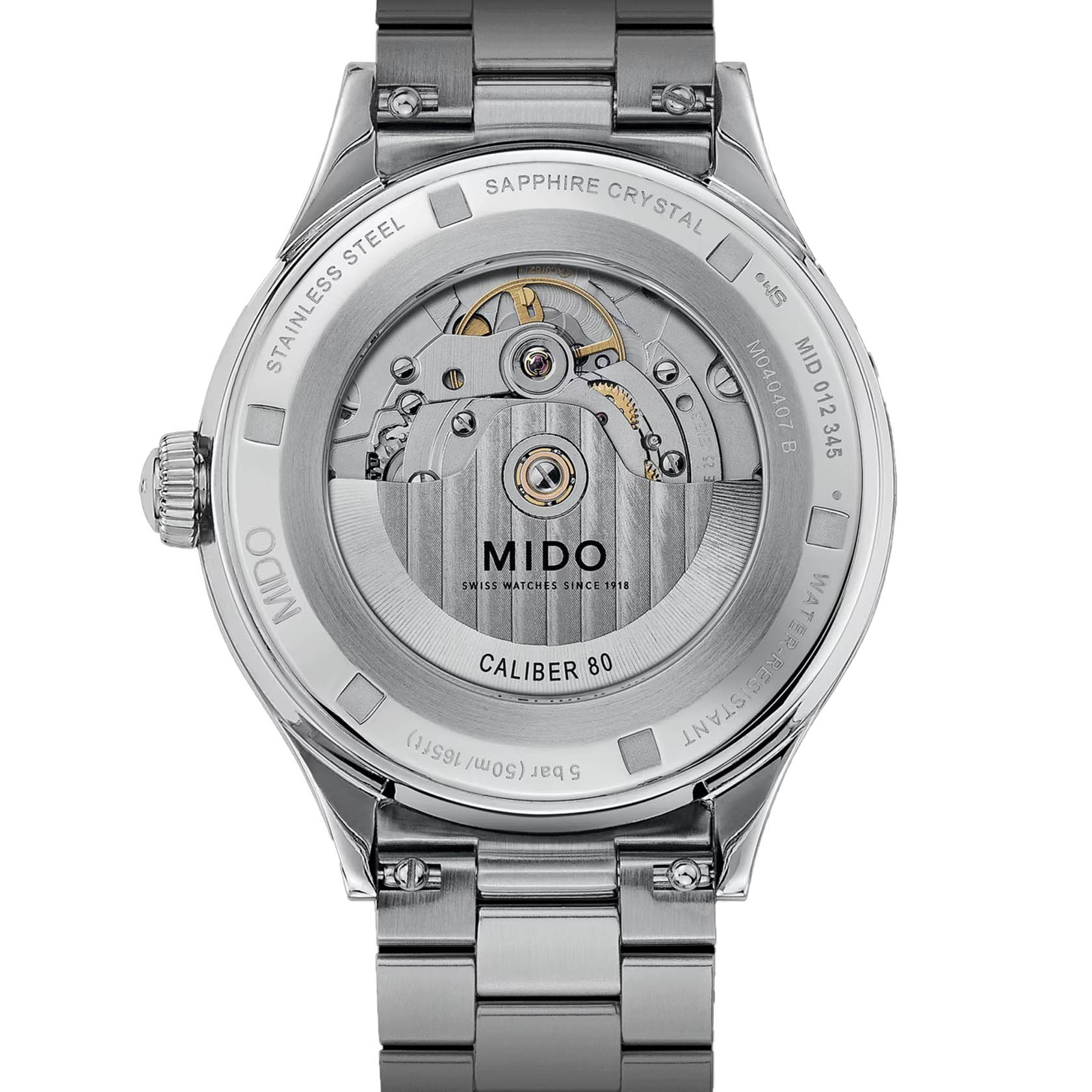 Мужские швейцарские механические часы с автоподзаводом Mido Multifort Patrimony Powerwind M040.407.11.091.00, механический механизм (автоматический калибр) с высокой точностью. Сапфировое стеклоСапфировое стеклоПрочный и надёжный материал из кристалла сапфира синтетического происхождения, характеризующийся особой твёрдостью и устойчивостью к царапинам и повреждениям. устойчивое к появлению царапин, обладающее высокой прозрачностью. Класс водозащиты: 50 метров, позволит защитить корпус от случайных брызг или капель дождя. Корпус часов изготовлен из нержавеющей стали. Стрелки и метки с люминесцентным покрытиемЛюминесцентное покрытиеПозволяет считывать показания времени в темноте. Производители наносят на стрелки, часовые индексы, безель или поверхность циферблата светонакопительный состав, дающий холодное свечение.. Прозрачная задняя крышка.