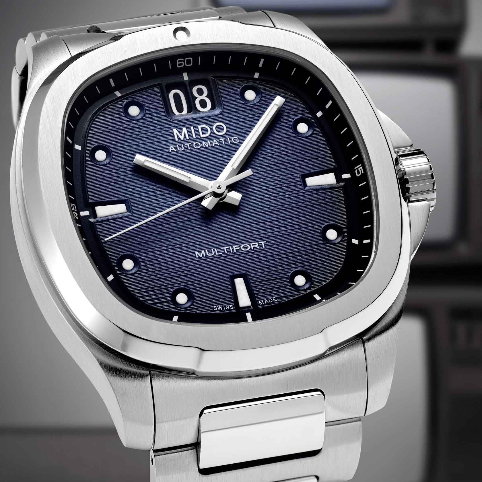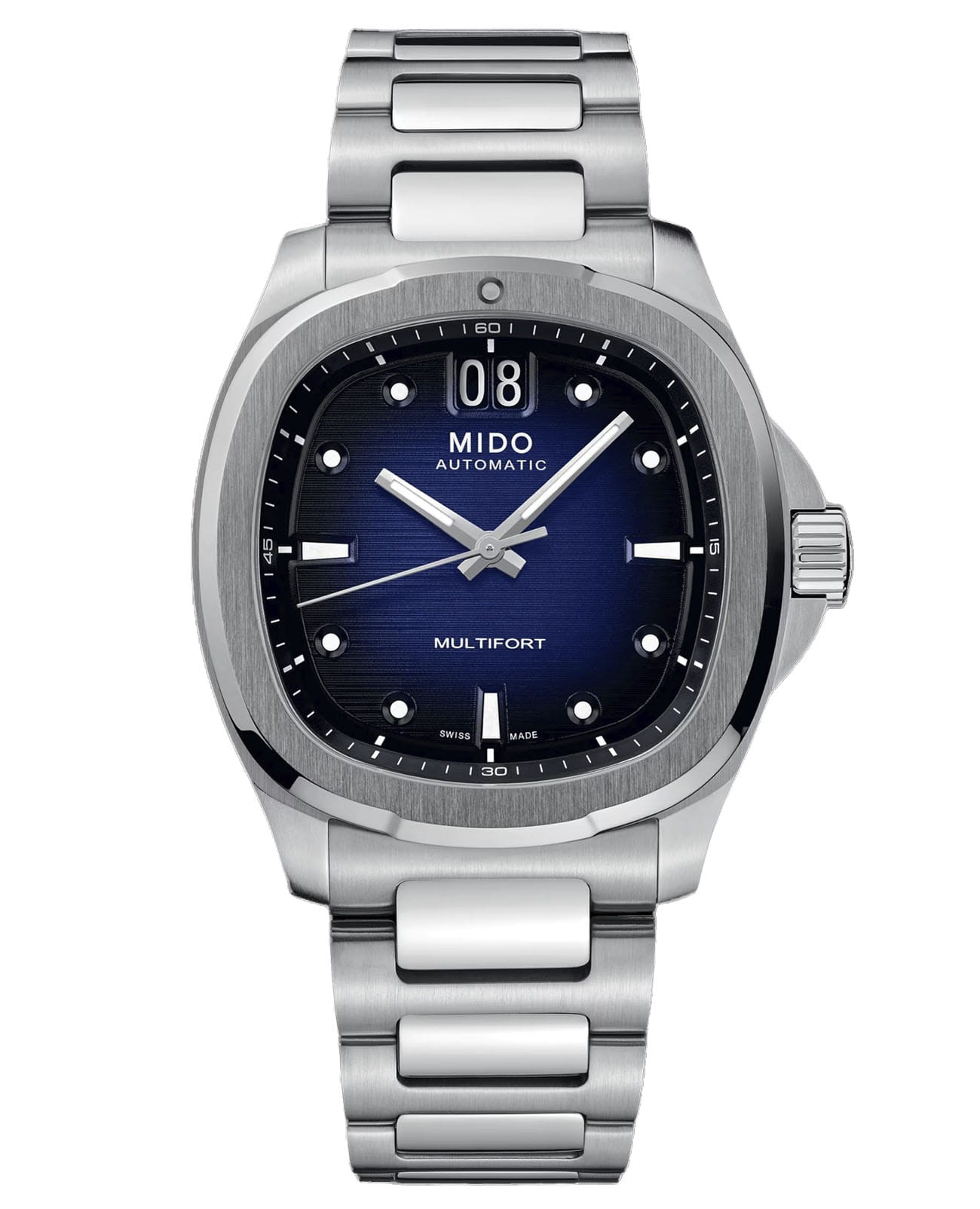 Мужские механические швейцарские часы Mido Multifort TV Big Date M049.526.11.041.00, механический механизм (автоматический калибр) с высокой точностью. Сапфировое стеклоСапфировое стеклоПрочный и надёжный материал из кристалла сапфира синтетического происхождения, характеризующийся особой твёрдостью и устойчивостью к царапинам и повреждениям. устойчивое к появлению царапин, обладающее высокой прозрачностью. Корпус часов изготовлен из нержавеющей стали. Стрелки с люминесцентным покрытиемЛюминесцентное покрытиеПозволяет считывать показания времени в темноте. Производители наносят на стрелки, часовые индексы, безель или поверхность циферблата светонакопительный состав, дающий холодное свечение.. Окошоко даты в положении 12 часов. Класс водозащиты: 100 метров, позволит плавать, нырять и заниматься другими водными видами спорта. Стальной браслет на раскладной застёжкеРаскладная застёжкаТакой тип застёжки используется только на браслетах из металла. Она никогда не раскрывается полностью, происходит разделение на 2 и более частей. Раскладывающая застёжка снизит вероятность потери часов к минимуму..