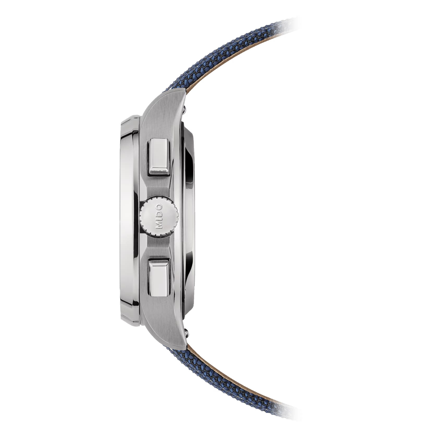 Мужские механические швейцарские часы Mido Multifort TV Chronograph M049.527.11.041.00, механический механизм с высокой точностью. Сапфировое стеклоСапфировое стеклоПрочный и надёжный материал из кристалла сапфира синтетического происхождения, характеризующийся особой твёрдостью и устойчивостью к царапинам и повреждениям. устойчивое к появлению царапин, обладающее высокой прозрачностью. Корпус часов изготовлен из нержавеющей стали. В механизм внедрена пружина баланса Nivachron™Nivachron™Специально разработанный инновационный сплав Nivachron™ повышает устойчивость часов к воздействию магнитных полей.. Стрелки с люминесцентным покрытиемЛюминесцентное покрытиеПозволяет считывать показания времени в темноте. Производители наносят на стрелки, часовые индексы, безель или поверхность циферблата светонакопительный состав, дающий холодное свечение.. Окошко даты в положении между 4 и 6 часами. Класс водозащиты: 100 метров, позволит плавать, нырять и заниматься другими водными видами спорта. Стальной браслет на раскладной застёжкеРаскладная застёжкаТакой тип застёжки используется только на браслетах из металла. Она никогда не раскрывается полностью, происходит разделение на 2 и более частей. Раскладывающая застёжка снизит вероятность потери часов к минимуму..Часы с функциями хронографаХронографФункция позволяет измерять отрезки времени с особой точностью: часы, минуты, секунды. Верным признаком хронографа является наличие на циферблате 3 дополнительных окошек-счётчиков. и тахиметраТахиметрРазмеченная шкала, располагается на ободке или безеле часов. Тахиметр позволяет рассчитать скорость на определённом участке пути, расстояние измеряется в километрах или милях.. Поставляются с дополнительным ремешком, что обеспечивает еще большую универсальность и комфорт.