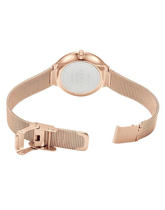 Женские классические часы. Кварцевый механизм. Корпус диаметром 32 мм выполнен из нержавеющей стали. Белый циферблат с метками в виде штрихов. Сапфировое стекло. Браслет миланского плетения из нержавеющей стали 316L с IP покрытиемIP-покрытиеМетод ионного напыления. Демонстрирует повышенную устойчивость к истиранию, окислению и химическим веществам. Под воздействием высокого давления и температуры около 1500°C молекулы металла надёжно соединяются с частицами корпуса часов..