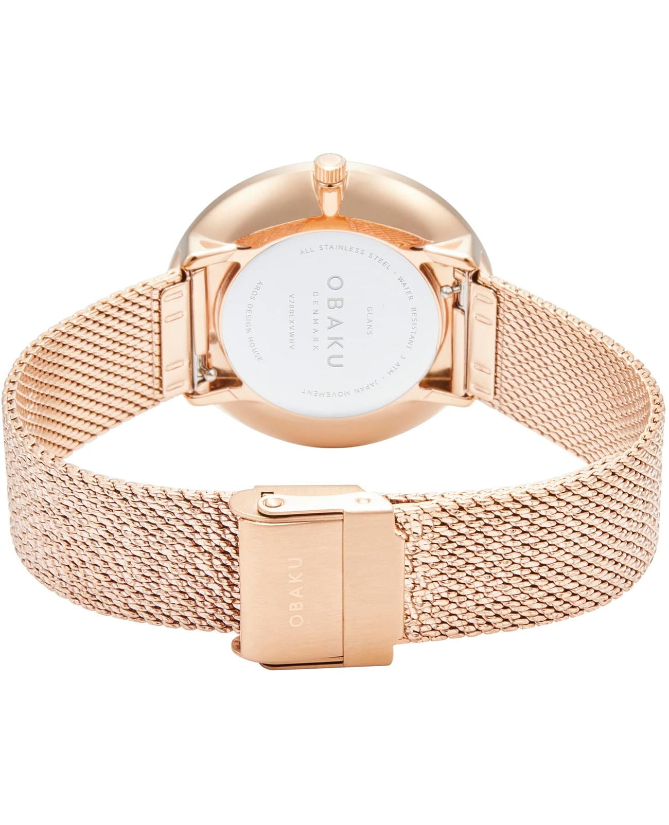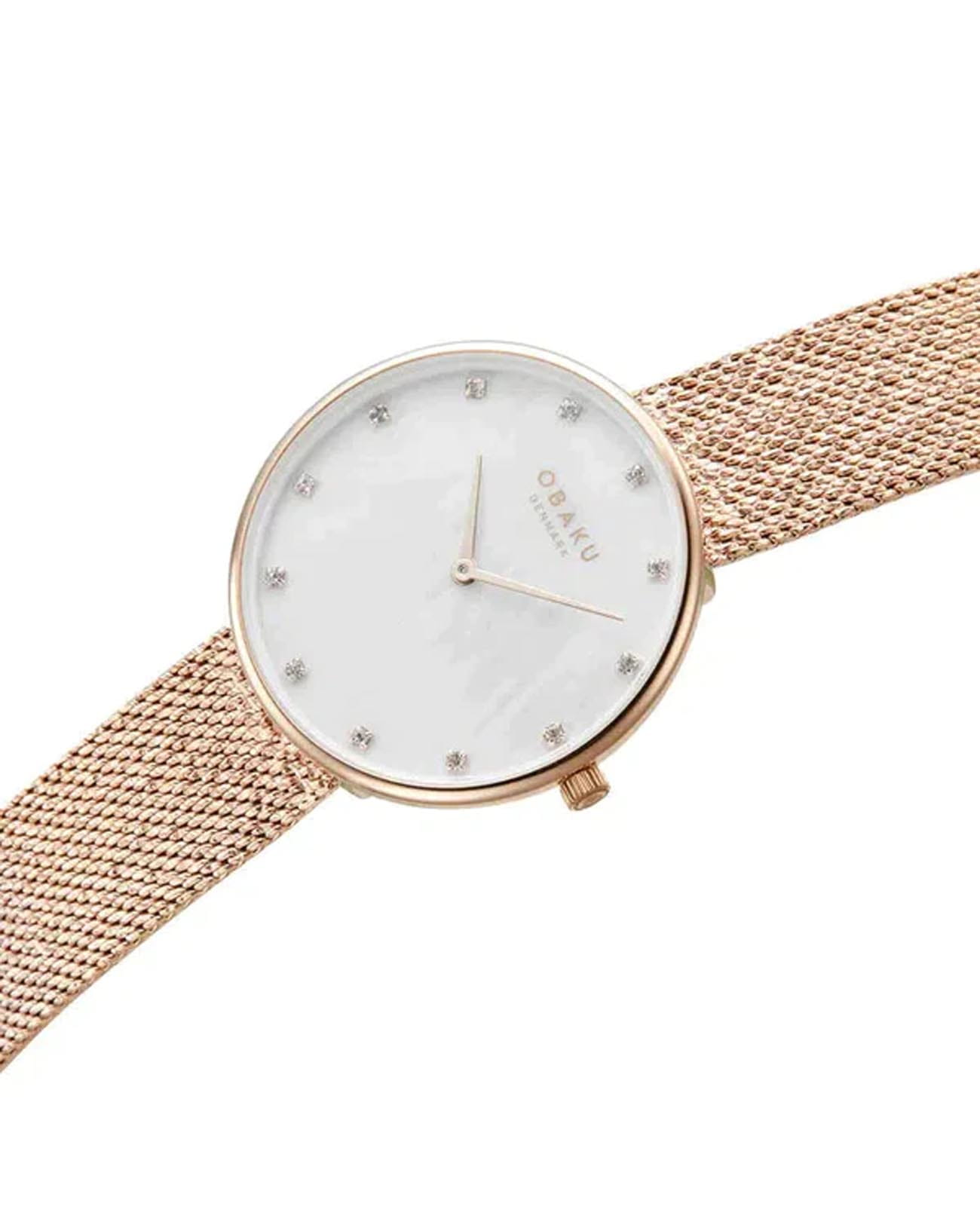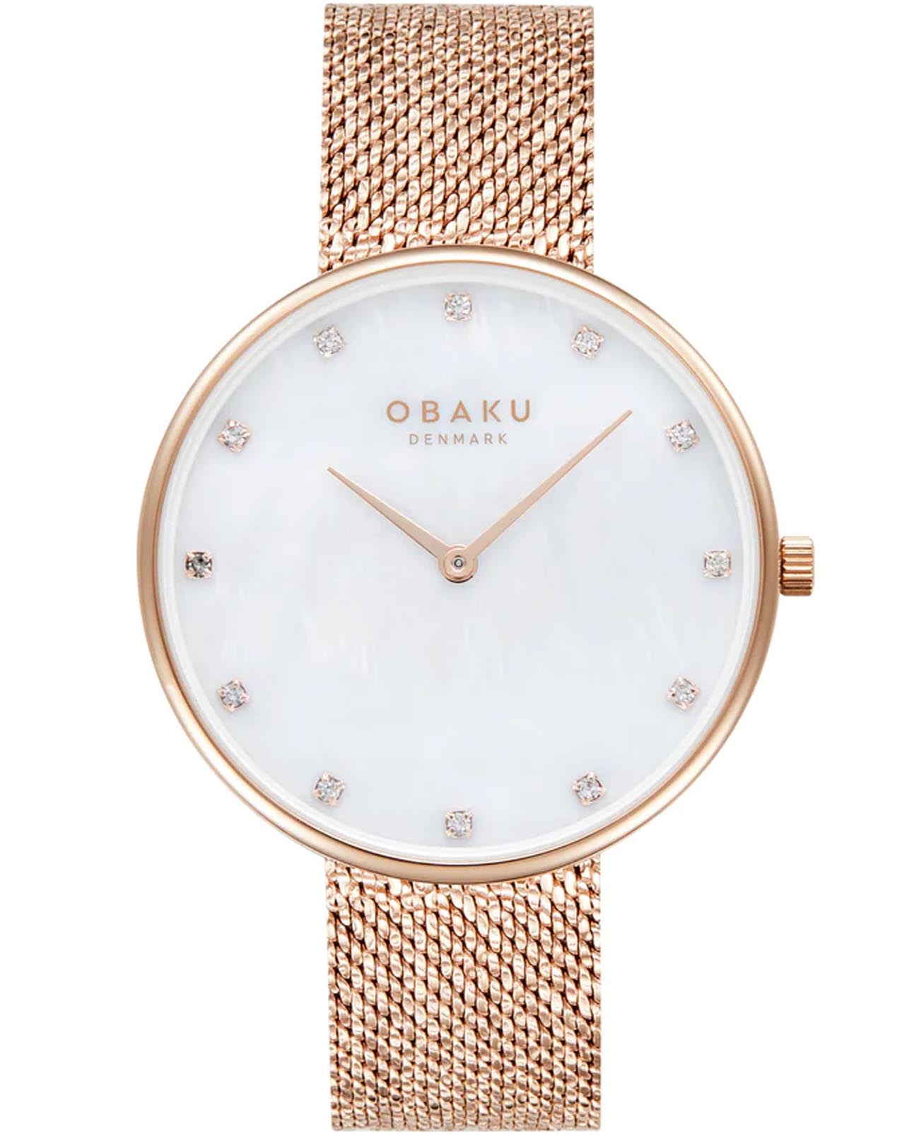Женские наручные кварцевые часы с минеральным стекломМинеральное стеклоМинеральное стекло представляет собой искусственно выращенный минерал кварца. Такое стекло отличается особой устойчивостью к повреждениям и царапинам. Уступает по некоторым качествам сапфировому стеклу. Obaku Mesh V288LXVWHV, кварцевый механизм с высокой точностью. Класс водозащиты: 30 метров, позволит защитить корпус от случайных брызг или капель дождя. Корпус часов изготовлен из стали с IP-покрытиемIP-покрытиеМетод ионного напыления. Демонстрирует повышенную устойчивость к истиранию, окислению и химическим веществам. Под воздействием высокого давления и температуры около 1500°C молекулы металла надёжно соединяются с частицами корпуса часов.. Стальной браслет выполнен в технике миланского плетения на раскладном замкеРаскладной замокДанный вариант застежки используется только на часах с металлическим браслетом. Отличительная особенность такого крепления в том, что длина браслета становится универсальной и вы можете самостоятельно отрегулировать нужный вам размер – застежка просто двигается по браслету часов.. Циферблат инкрустирован кристаллами.