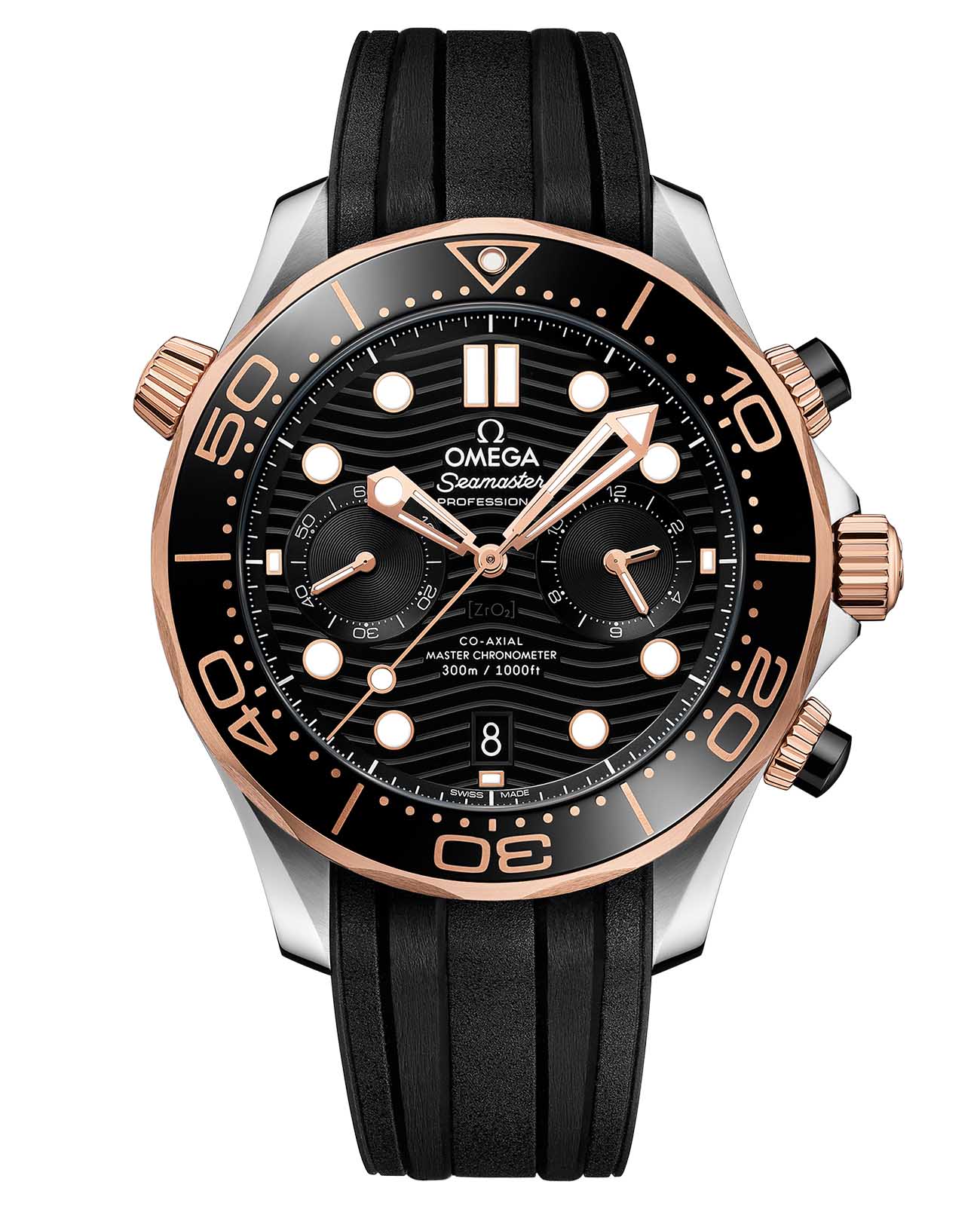 Рожденные в 1993 году, часы Seamaster Professional Diver 300M сразу же покорили сердца истинных ценителей часового искусства. Современная коллекция воплощает легендарное морское наследие, обогащенное передовыми технологиями и фирменным дизайном OMEGA. Этот хронографХронографФункция позволяет измерять отрезки времени с особой точностью: часы, минуты, секунды. Верным признаком хронографа является наличие на циферблате 3 дополнительных окошек-счётчиков. в корпусе из нержавеющей стали и 18-каратного золота Sedna™18-каратное золотоОбозначение по каратной системе пробирования, оно показывает, сколько драгоценного металла содержится в изделии. 18 карат - в составе 75% чистого золота, соответствует 750 пробе.