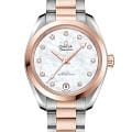 Omega Seamaster Aqua Terra выполнены в симметричном корпусе из нержавеющей стали и 18K Sedna™ золота с завинчивающейся задней крышкой, украшенной волновым узором. Циферблат дополнен окошком даты на 6 часах и 11 бриллиантами, установленными в держатели из 18K Sedna™ золота — деталь, подчёркивающая женственность и роскошь модели. Циферблат белого цвета изготовлен из перламутрового материала с переливающимся эффектом. Стрелки и метки выполнены из 18K Sedna™ золота. Калибр Omega 8800 сертифицирован как Master Chronometer — гарантия высочайшей точности и устойчивости к магнитным полям. Запас хода составляет 55 часов. Защиту циферблата обеспечивает сапфировое стеклоСапфировое стеклоПрочный и надёжный материал из кристалла сапфира синтетического происхождения, характеризующийся особой твёрдостью и устойчивостью к царапинам и повреждениям. с антибликовым покрытиемАнтибликовое покрытиеСлой оксида металла в 0,13-0,3 микрон, благодаря которому стекло часов не бликует и не отражает свет. Антибликовое покрытие уменьшает отражение света в 10 раз, обеспечивая отличную читаемость показателей циферблата. с обеих сторон. Водозащита позволяет использовать часы в воде без риска повреждения. Часы установлены на интегрированный браслет из стали и 18K Sedna™ золота с раскладной застёжкойРаскладная застёжкаТакой тип застёжки используется только на браслетах из металла. Она никогда не раскрывается полностью, происходит разделение на 2 и более частей. Раскладывающая застёжка снизит вероятность потери часов к минимуму.. Это сочетание премиального качества, технологичности и классического дизайна.