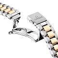 Omega Seamaster Aqua Terra выполнены в симметричном корпусе из нержавеющей стали и золота 18K Moonshine™ с завинчивающейся задней крышкой, декоративным волнистым узором. Циферблат дополнил окошком даты на 6 часов и логотипом OMEGA в центре. Стрелки и метки оснащены Super-LumiNova для лучшей читаемости в темноте. Механизм Калибр Omega 8900 сертифицирован как Master Chronometer — гарантия высочайшей точности и устойчивости к магнитным полям. Запас хода составляет 60 часов. Защита циферблата обеспечивается сапфировое стеклоСапфировое стеклоПрочный и надёжный материал из кристалла сапфира синтетического происхождения, характеризующийся особой твёрдостью и устойчивостью к царапинам и повреждениям. с антибликовым покрытиемАнтибликовое покрытиеСлой оксида металла в 0,13-0,3 микрон, благодаря которому стекло часов не бликует и не отражает свет. Антибликовое покрытие уменьшает отражение света в 10 раз, обеспечивая отличную читаемость показателей циферблата.. Водозащита Позволяет использовать часы в воде без повреждений. Часы установлены на интегрированном браслете с полированными и матовыми звеньями. Это сочетание премиального качества, технологичности и классического дизайна.