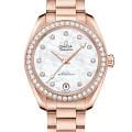 Часы Omega Seamaster Aqua Terra выполнены в симметричном корпусе из 18K Sedna™ золота с завинчивающейся задней крышкой, украшенной волновым узором. Безель инкрустирован бриллиантами, что добавляет модели роскошный акцент. Циферблат белого цвета выполнен из перламутра и дополнен окошком даты на 6 часах, а также 11 бриллиантами, установленными в держатели из 18K Sedna™ золота. Калибр Omega 8801 сертифицирован как Master Chronometer — гарантия высочайшей точности и устойчивости к магнитным полям. Запас хода составляет 55 часов. Защиту циферблата обеспечивает сапфировое стеклоСапфировое стеклоПрочный и надёжный материал из кристалла сапфира синтетического происхождения, характеризующийся особой твёрдостью и устойчивостью к царапинам и повреждениям. с антибликовым покрытиемАнтибликовое покрытиеСлой оксида металла в 0,13-0,3 микрон, благодаря которому стекло часов не бликует и не отражает свет. Антибликовое покрытие уменьшает отражение света в 10 раз, обеспечивая отличную читаемость показателей циферблата. с обеих сторон. Водозащита позволяет использовать часы в воде без риска повреждения. Часы установлены на браслет из 18K Sedna™ золота с раскладной застёжкойРаскладная застёжкаТакой тип застёжки используется только на браслетах из металла. Она никогда не раскрывается полностью, происходит разделение на 2 и более частей. Раскладывающая застёжка снизит вероятность потери часов к минимуму.. Вес модели — около 153 грамма. Это сочетание премиального качества, технологичности и классического дизайна.