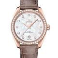Omega Seamaster Aqua Terra выполнены в симметричном корпусе из 18K Sedna™ золота с завинчивающейся задней крышкой, украшенной волновым узором. Циферблат дополнен окошком даты на 6 часах и 11 бриллиантами, установленными в держатели из 18K Sedna™ золота. Поверхность циферблата выполнена из перламутрового материала с переливающимся эффектом. Калибр Omega 8801 сертифицирован как Master Chronometer — гарантия высочайшей точности и устойчивости к магнитным полям. Запас хода составляет 55 часов. Защиту циферблата обеспечивает сапфировое стеклоСапфировое стеклоПрочный и надёжный материал из кристалла сапфира синтетического происхождения, характеризующийся особой твёрдостью и устойчивостью к царапинам и повреждениям. с антибликовым покрытиемАнтибликовое покрытиеСлой оксида металла в 0,13-0,3 микрон, благодаря которому стекло часов не бликует и не отражает свет. Антибликовое покрытие уменьшает отражение света в 10 раз, обеспечивая отличную читаемость показателей циферблата. с обеих сторон. Водозащита позволяет использовать часы в воде без риска повреждения. Часы установлены на кожаный ремешок с полированной застёжкой. Это сочетание премиального качества, технологичности и классического дизайна.