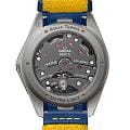 Часы Omega Seamaster Aqua Terra “Ultra Light” выполнены в корпусе из пескоструйного титана Grade 5 с завинчивающейся задней крышкой. Безель оснащён кольцом из керамики на основе нитрида кремния, устойчивой к царапинам и износу. Циферблат дополнен окошком даты и оформлен горизонтальным рисунком, выполненным методом лазерной гравировки. Секундная стрелка выделена жёлтым цветом и стилизована под шест для прыжков в высоту. Метки и стрелки оснащены люминесцентным покрытиемЛюминесцентное покрытиеПозволяет считывать показания времени в темноте. Производители наносят на стрелки, часовые индексы, безель или поверхность циферблата светонакопительный состав, дающий холодное свечение. Super-LumiNova для лучшей читаемости в темноте. Калибр Omega 8928 Ti создан специально для этой модели и отличается увеличенным запасом хода — до 72 часов. Механизм сертифицирован как Master Chronometer, что гарантирует высочайшую точность и устойчивость к магнитным полям. Защиту циферблата обеспечивает сапфировое стеклоСапфировое стеклоПрочный и надёжный материал из кристалла сапфира синтетического происхождения, характеризующийся особой твёрдостью и устойчивостью к царапинам и повреждениям. с антибликовым покрытиемАнтибликовое покрытиеСлой оксида металла в 0,13-0,3 микрон, благодаря которому стекло часов не бликует и не отражает свет. Антибликовое покрытие уменьшает отражение света в 10 раз, обеспечивая отличную читаемость показателей циферблата. с обеих сторон. Водозащита позволяет использовать часы в воде без риска повреждения. Часы установлены на интегрированный ремешок синего и жёлтого цветов из резины и нейлоновой ткани. Это сочетание сверхлёгкого исполнения, прочности и уникального дизайна, вдохновлённого спортивными достижениями.