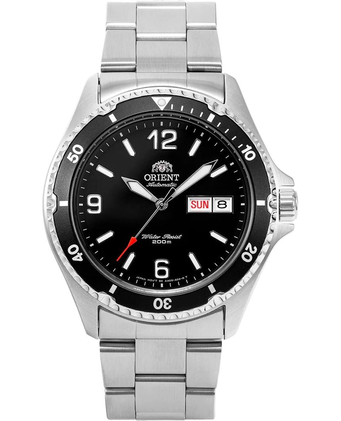 Мужские механические часы с автоподзаводом Orient Automatic AA02001B. Минеральное стеклоМинеральное стеклоМинеральное стекло представляет собой искусственно выращенный минерал кварца. Такое стекло отличается особой устойчивостью к повреждениям и царапинам. Уступает по некоторым качествам сапфировому стеклу. устойчивое к появлению царапин, обладающее высокой прозрачностью. Корпус из нержавеющей стали. Вращающийся безельБезельВнешний ободок, закрепляющий стекло. В спортивных часах так называется поворотное кольцо с делениями на циферблате, выполняет роль таймера – замеряет отрезки времени на шкале. Неподвижный безель – элемент декора. Однонаправленно вращающийся безель на дайверских часах позволяет фиксировать моменты погружения и выныривания на поверхность. из нержавеющей стали с PVDPVDУльтратонкое покрытие наносится в технике вакуумного напыления, сочетает в себе нитрид титана особой прочности со слоем золота или оксида хрома. Несёт в себе декоративную или защитную функцию. покрытием. Окошко даты в положении 3 часов. Стрелки с люминесцентным покрытиемЛюминесцентное покрытиеПозволяет считывать показания времени в темноте. Производители наносят на стрелки, часовые индексы, безель или поверхность циферблата светонакопительный состав, дающий холодное свечение.. Класс водозащиты: 200 метров, позволит плавать, нырять и заниматься другими водными видами спорта. Стальной браслет на раскладной застёжкеРаскладная застёжкаТакой тип застёжки используется только на браслетах из металла. Она никогда не раскрывается полностью, происходит разделение на 2 и более частей. Раскладывающая застёжка снизит вероятность потери часов к минимуму..