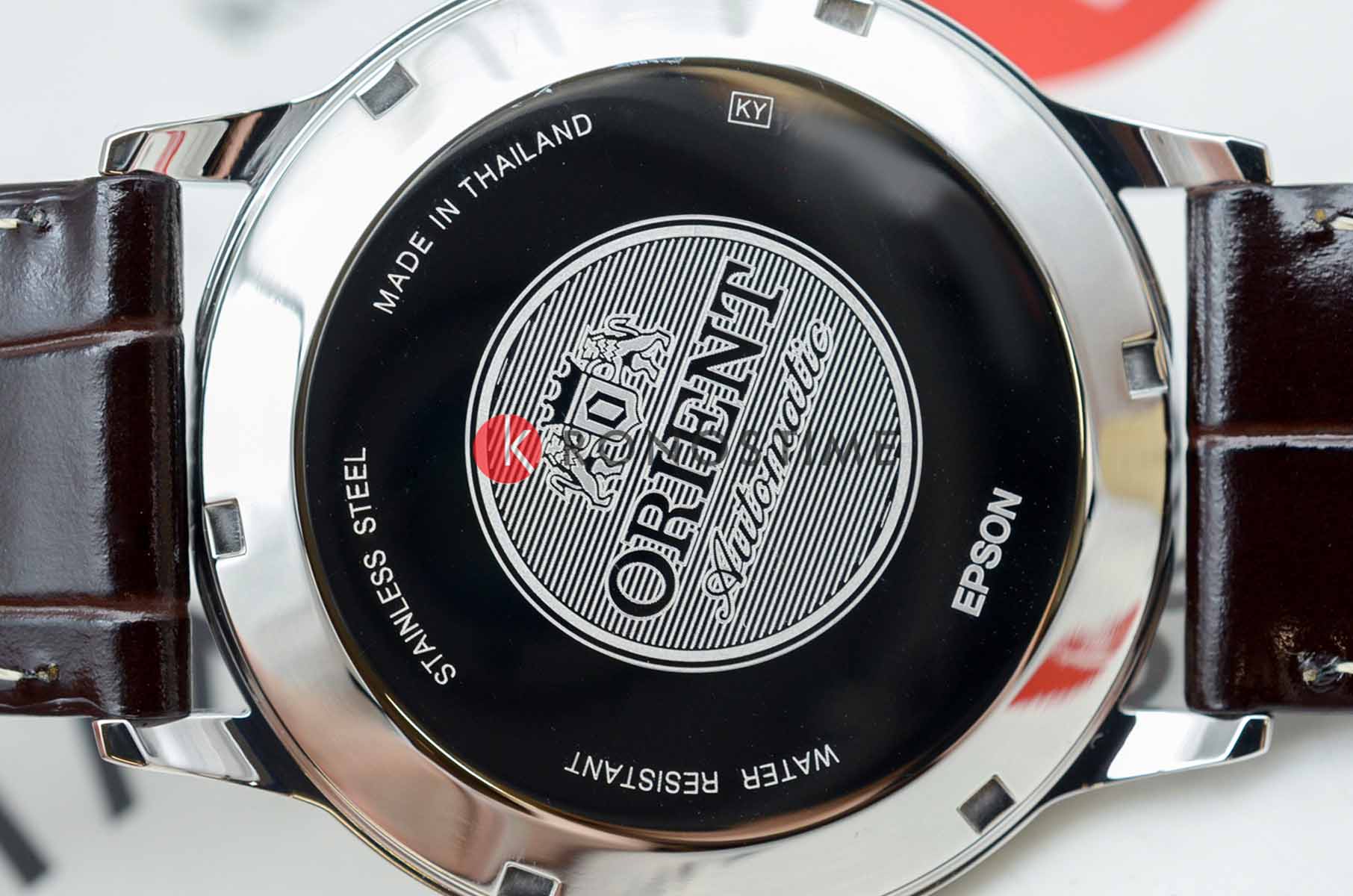 Orient AC00009N (Bambino Version II) — классическая модель с выразительным винтажным характером. Корпус диаметром 40,5 мм выполнен из нержавеющей стали с полированной отделкой, благодаря чему часы смотрятся элегантно и сдержанно. Толщина корпуса — 11,8 мм, что позволяет им комфортно располагаться под манжетом рубашки.