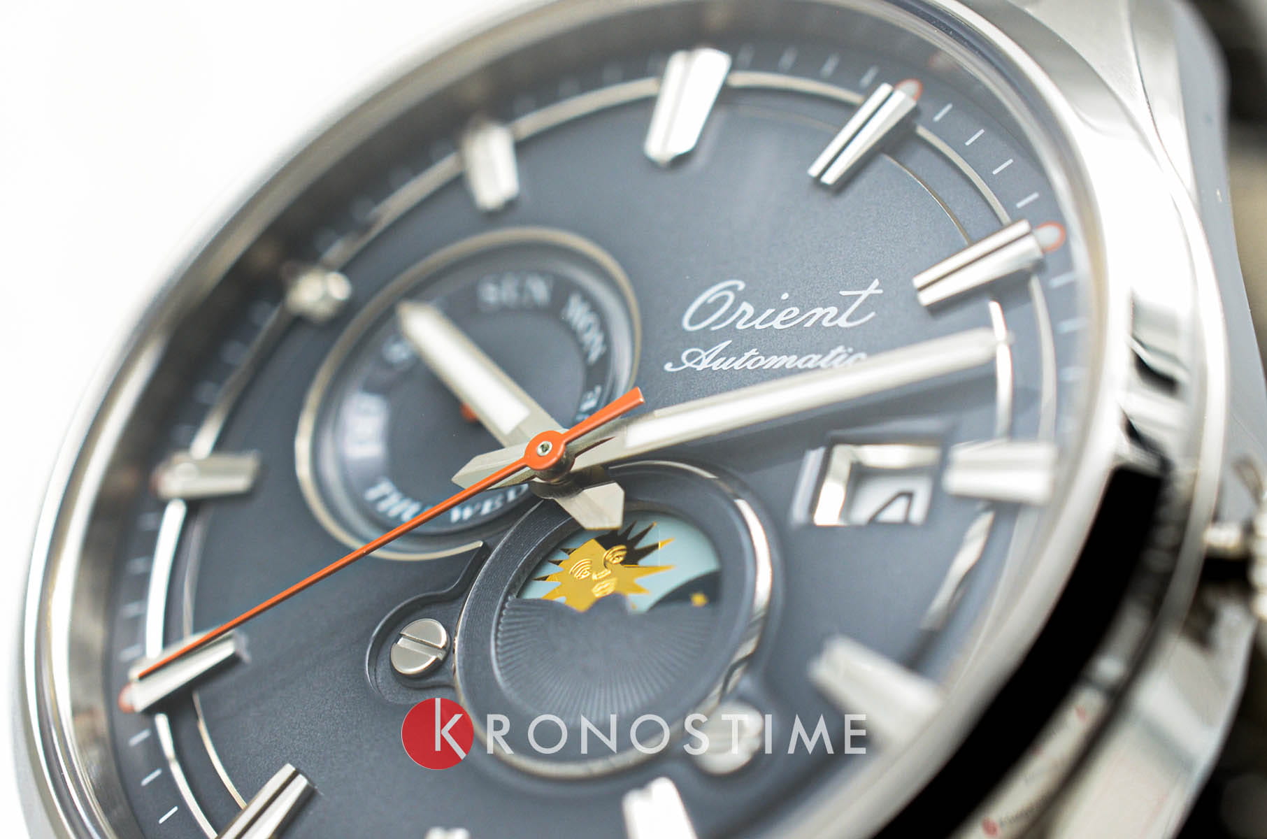 Часы Orient Sun & Moon RA-AK0311N — это изысканное сочетание элегантности и функциональности. Корпус из нержавеющей стали диаметром 41,5 мм защищён сапфировым стекломСапфировое стеклоПрочный и надёжный материал из кристалла сапфира синтетического происхождения, характеризующийся особой твёрдостью и устойчивостью к царапинам и повреждениям., которое обеспечивает долговечность и защиту от царапин. Глубокий серый циферблат с изящными деталями, отображающим смену дня и ночи. Также на циферблате представлены указатель дня недели и окошко даты, что подчёркивает практичность модели. Автоматический механизм Orient Calibre F6722 обеспечивает высокую точность и удобство настройки времени. Запас хода до 40 часов делает часы надёжным спутником в повседневной жизни. Элегантный браслет из нержавеющей стали оснащён раскладной застёжкойРаскладная застёжкаТакой тип застёжки используется только на браслетах из металла. Она никогда не раскрывается полностью, происходит разделение на 2 и более частей. Раскладывающая застёжка снизит вероятность потери часов к минимуму., обеспечивающей комфортное ношение и надёжную фиксацию на запястье. Водонепроницаемость до 50 метров защищает часы от случайных брызг, делая их подходящими для повседневного использования. Стрелки и метки с люминесцентным покрытиемЛюминесцентное покрытиеПозволяет считывать показания времени в темноте. Производители наносят на стрелки, часовые индексы, безель или поверхность циферблата светонакопительный состав, дающий холодное свечение. позволяющие легко определять время даже в темноте. Orient Sun & Moon RA-AK0311N — это выбор для тех, кто ценит стиль, качество и универсальность. Лимитированная серия.