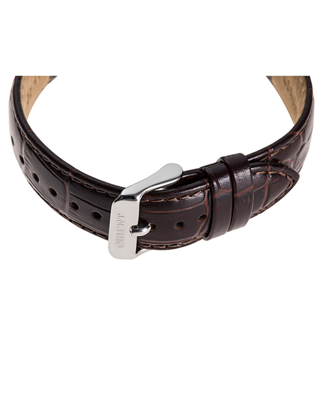 Часы дополнены кожаным ремешком коричневого цвета, который подчеркивает их классический стиль. Водонепроницаемость до 30 метров позволяет использовать их в повседневных условиях, например, при мытье рук или под дождем.