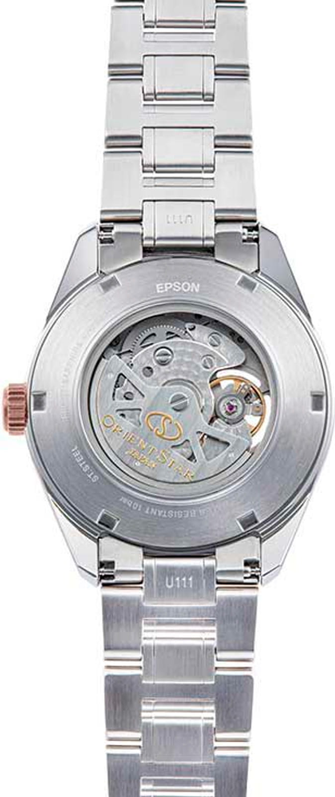 Orient Contemporary RE-AV0123G – искусство механики в современном исполнении Представляем вашему вниманию мужские механические часы с автоподзаводом Orient Star RE-AV0123G0 (RE-AV0123G00B), выполненные в духе современной классики. Эти часы привлекают внимание своим изысканным дизайном и высоким качеством исполнения. Основой часов служит прочный корпус и браслет из нержавеющей стали, придающие изделию солидность и долговечность. Безель украшен PVD-покрытиемPVDУльтратонкое покрытие наносится в технике вакуумного напыления, сочетает в себе нитрид титана особой прочности со слоем золота или оксида хрома. Несёт в себе декоративную или защитную функцию., что добавляет часам элегантности и завершает общий образ. Механизм часов оснащен 22 камнями и работает с частотой 21 600 полуколебаний в час, обеспечивая высокую точность хода. Автоподзавод обеспечивает запас хода до 50 часов, позволяя забыть о необходимости ежедневной ручной заводки. Функция stop-second дает возможность точно установить время. Особенностью данной модели является прозрачное окошко на циферблате, через которое можно наблюдать за работой сложного внутреннего механизма. Секундная стрелка расположена на отдельном циферблате, что добавляет часам уникальности и оригинальности. Циферблат выполнен по технологии Sunray («солнечные лучи»), создавая эффект игры света и тени. Часовые метки представлены в виде штрихов и римской цифры XII, что подчеркивает классический стиль часов. Класс водозащиты WR100 позволяет использовать часы не только в повседневной жизни, но и во время активного отдыха, включая плавание, ныряние и другие водные виды спорта. Часы способны выдерживать давление воды на глубине до 100 метров. Браслет из нержавеющей стали оснащен удобной раскладной застежкой раскладной застёжкеРаскладная застёжкаТакой тип застёжки используется только на браслетах из металла. Она никогда не раскрывается полностью, происходит разделение на 2 и более частей. Раскладывающая застёжка снизит вероятность потери часов к минимуму., обеспечивающей надежную фиксацию на запястье и облегчая процесс надевания/снимания часов.