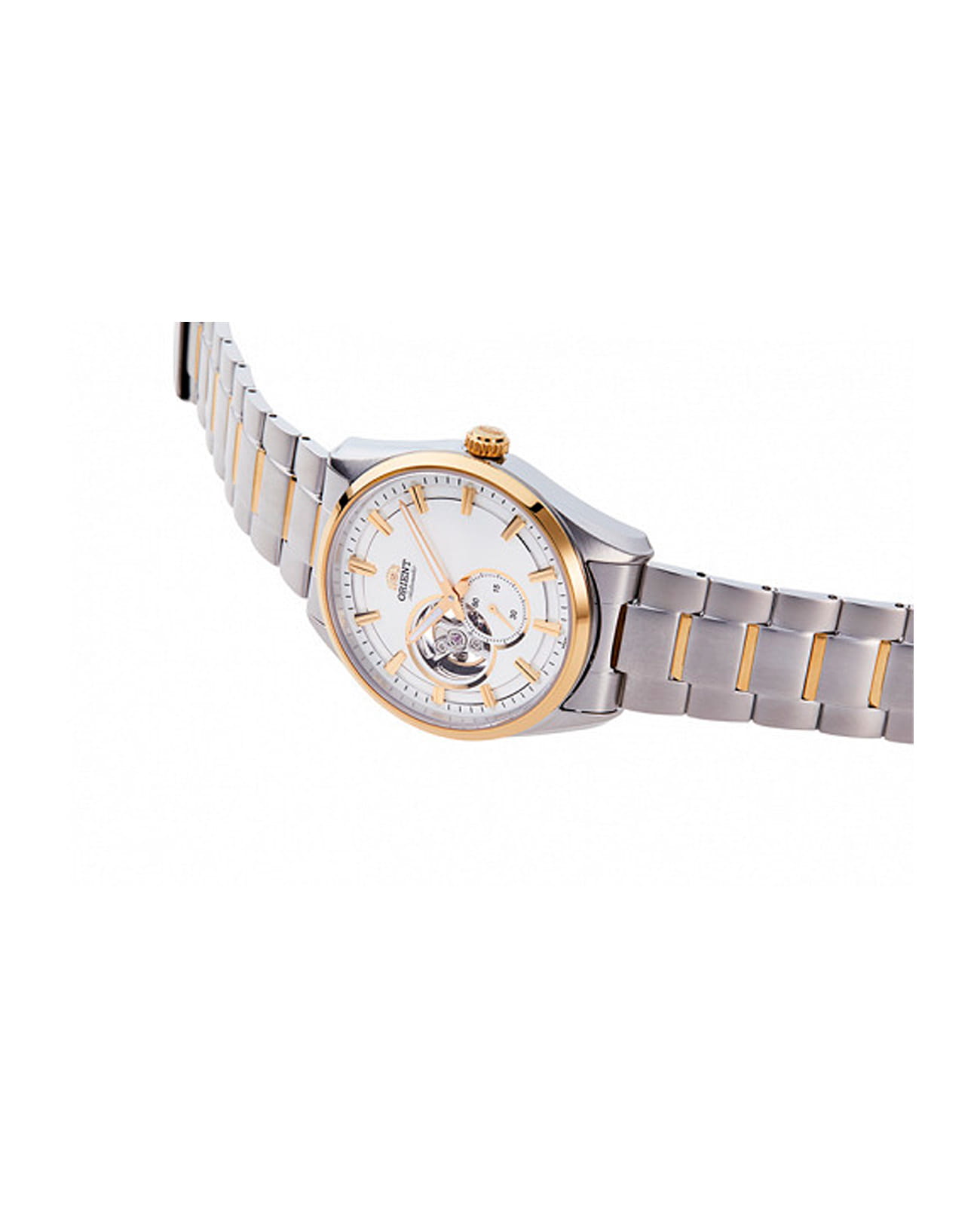 Часы Orient RN-AR0006S представляют собой стильную модель из коллекции Contemporary, сочетающую в себе классический дизайн и современные технологии. Это мужские механические часы с автоподзаводом, оснащённые калибром F6S22, который обеспечивает точность хода в пределах +25/-15 секунд в сутки и запас хода до 40 часов. Часы также поддерживают функцию ручного подзавода и остановки секундной стрелки (hacking stop), что позволяет точно синхронизировать время. Корпус часов выполнен из нержавеющей стали и имеет диаметр 40,8 мм при толщине 10,9 мм. Водонепроницаемость модели составляет 50 метров, что защищает часы от случайных брызг или капель дождя, но не предназначено для плавания или дайвинга. Часы оснащены сапфировым стекломСапфировое стеклоПрочный и надёжный материал из кристалла сапфира синтетического происхождения, характеризующийся особой твёрдостью и устойчивостью к царапинам и повреждениям., устойчивым к царапинам, и винтовой задней крышкой с прозрачным окном, позволяющим наблюдать за работой механизма. Циферблат выполнен в белом цвете с полускелетонным дизайном, который открывает вид на механизм в области 9 часов. На циферблате расположены светящиеся метки и стрелки с люминесцентным покрытиемЛюминесцентное покрытиеПозволяет считывать показания времени в темноте. Производители наносят на стрелки, часовые индексы, безель или поверхность циферблата светонакопительный состав, дающий холодное свечение., обеспечивающие хорошую видимость в темноте. Также предусмотрено окно малой секундной стрелки на позиции 6 часов, что добавляет часам уникальный и стильный вид. Браслет часов изготовлен из нержавеющей стали с частичным PVD-покрытиемPVDУльтратонкое покрытие наносится в технике вакуумного напыления, сочетает в себе нитрид титана особой прочности со слоем золота или оксида хрома. Несёт в себе декоративную или защитную функцию., что придаёт ему дополнительную износостойкость и элегантный внешний вид. Застёжка выполнена вна раскладной застёжкеРаскладная застёжкаТакой тип застёжки используется только на браслетах из металла. Она никогда не раскрывается полностью, происходит разделение на 2 и более частей. Раскладывающая застёжка снизит вероятность потери часов к минимуму., что обеспечивает надёжную фиксацию на запястье. Часы оснащены фиксированным безелемБезельВнешний ободок, закрепляющий стекло. В спортивных часах так называется поворотное кольцо с делениями на циферблате, выполняет роль таймера – замеряет отрезки времени на шкале. Неподвижный безель – элемент декора. Однонаправленно вращающийся безель на дайверских часах позволяет фиксировать моменты погружения и выныривания на поверхность. с PVD-покрытиемPVDУльтратонкое покрытие наносится в технике вакуумного напыления, сочетает в себе нитрид титана особой прочности со слоем золота или оксида хрома. Несёт в себе декоративную или защитную функцию., который подчёркивает их ретро-стиль и добавляет модели современный акцент .