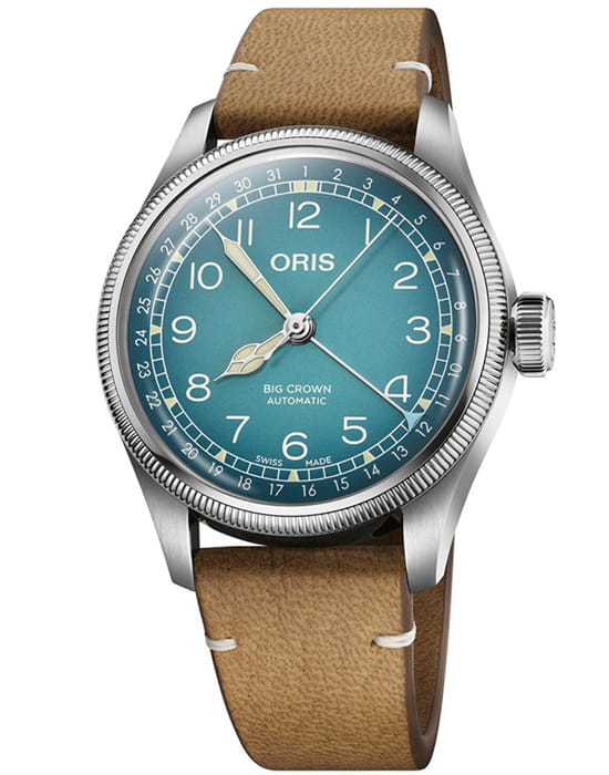 Oris сотрудничает со швейцарской компанией Cervo Volante, известной своими натуральными аксессуарами из оленьей кожи. Часы Big Crown Pointer Date из нержавеющей стали оснащены ремешком из оленьей кожи Cervo Volante и бирюзовым циферблатом, вдохновленным швейцарскими Альпами.
