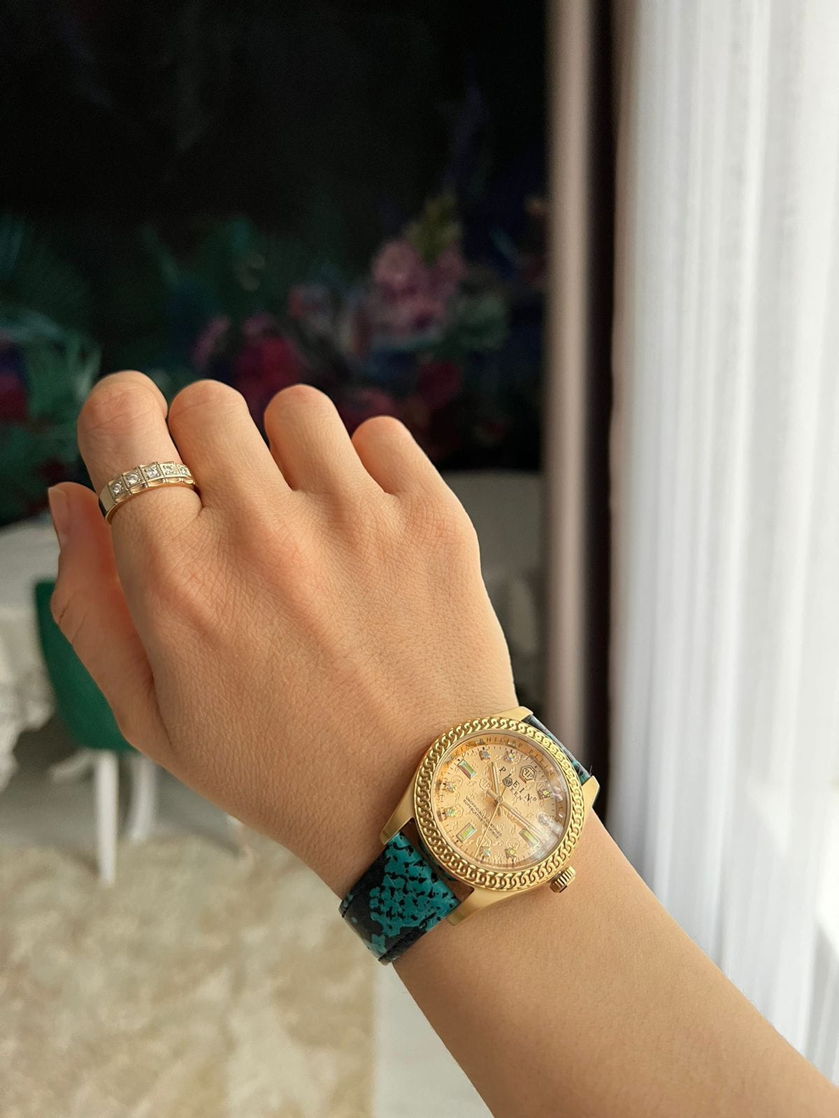 Долго выбирала часы и остановилась на этой модели. Яркие контрастные часы приковывают к себе взгляд всех окружающих! Коллеги сразу оценили новый аксессуар. Благодарю за быструю доставку и надежную упаковку)