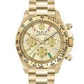 Яркие женские часы-хронографХронографФункция позволяет измерять отрезки времени с особой точностью: часы, минуты, секунды. Верным признаком хронографа является наличие на циферблате 3 дополнительных окошек-счётчиков. с секундомеромСекундомерСекундоме́р — прибор, способный измерять интервалы времени с точностью до долей секунды. Philipp Plein Nobile Lady PWSBA0223, кварцевый механизм с высокой точностью. 12 и 24-часовой формат времени. Класс водозащиты: 50 метров, позволит защитить корпус от случайных брызг или капель дождя. Корпус и браслет часов изготовлены из стали с IP-покрытиемIP-покрытиеМетод ионного напыления. Демонстрирует повышенную устойчивость к истиранию, окислению и химическим веществам. Под воздействием высокого давления и температуры около 1500°C молекулы металла надёжно соединяются с частицами корпуса часов.. Стрелки с люминесцентным покрытиемЛюминесцентное покрытиеПозволяет считывать показания времени в темноте. Производители наносят на стрелки, часовые индексы, безель или поверхность циферблата светонакопительный состав, дающий холодное свечение.. Стальной браслет на застёжке-бабочке с кнопкамиЗастёжка "бабочка"Такой вид застёжки дополняется предохранителями, помогающими избежать случайного раскрытия браслета. Обладают изящным исполнением. . Циферблат инкрустирован кристаллами Preciosa.