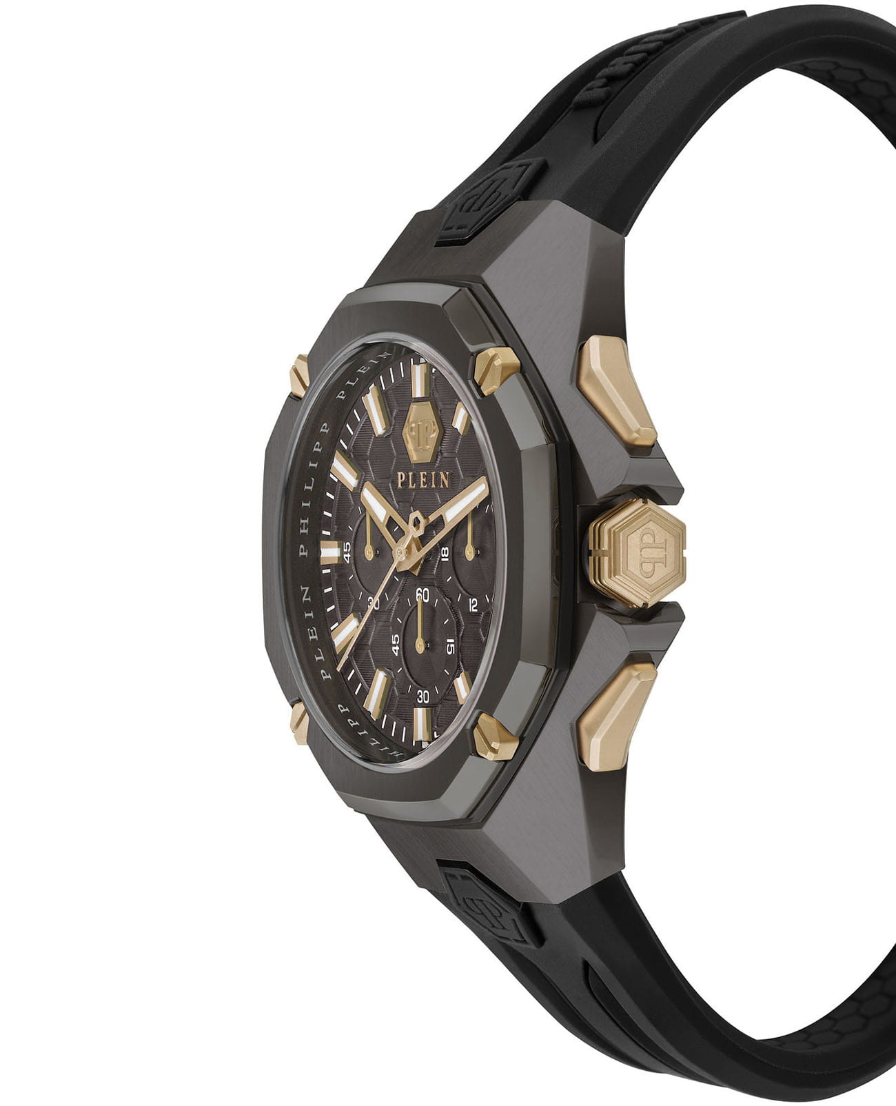 Мужские часы c хронографомХронографФункция позволяет измерять отрезки времени с особой точностью: часы, минуты, секунды. Верным признаком хронографа является наличие на циферблате 3 дополнительных окошек-счётчиков. Philipp Plein Octagon PWTBA0323, кварцевый механизм с высокой точностью. Класс водозащиты: 50 метров, позволит защитить корпус от случайных брызг или капель дождя. Корпус часов изготовлен из нержавеющей стали с IP-покрытиемIP-покрытиеМетод ионного напыления. Демонстрирует повышенную устойчивость к истиранию, окислению и химическим веществам. Под воздействием высокого давления и температуры около 1500°C молекулы металла надёжно соединяются с частицами корпуса часов.. Стрелки и метки с люминесцентным покрытиемЛюминесцентное покрытиеПозволяет считывать показания времени в темноте. Производители наносят на стрелки, часовые индексы, безель или поверхность циферблата светонакопительный состав, дающий холодное свечение.. 12 и 24-часовой формат времени. Минеральное стеклоМинеральное стеклоМинеральное стекло представляет собой искусственно выращенный минерал кварца. Такое стекло отличается особой устойчивостью к повреждениям и царапинам. Уступает по некоторым качествам сапфировому стеклу. устойчивое к мелким механическим повреждениям.