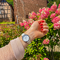 Женские кварцевые часы Pierre Lannier Multiples 009M600. Центральные часовая, минутная и секундная стрелки. Белый циферблат. Круглый корпус выполнен из полированной нержавеющей стали с фактурой по безелюБезельВнешний ободок, закрепляющий стекло. В спортивных часах так называется поворотное кольцо с делениями на циферблате, выполняет роль таймера – замеряет отрезки времени на шкале. Неподвижный безель – элемент декора. Однонаправленно вращающийся безель на дайверских часах позволяет фиксировать моменты погружения и выныривания на поверхность.. Белый кожаный ремешок шириной 14 мм, стандартная застежка. Прочное минеральное стеклоМинеральное стеклоМинеральное стекло представляет собой искусственно выращенный минерал кварца. Такое стекло отличается особой устойчивостью к повреждениям и царапинам. Уступает по некоторым качествам сапфировому стеклу., устойчивое к мелким механическим повреждениям. Водостойкость: 50 метров, позволит защитить корпус от случайных брызг или капель дождя.