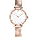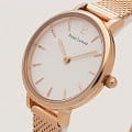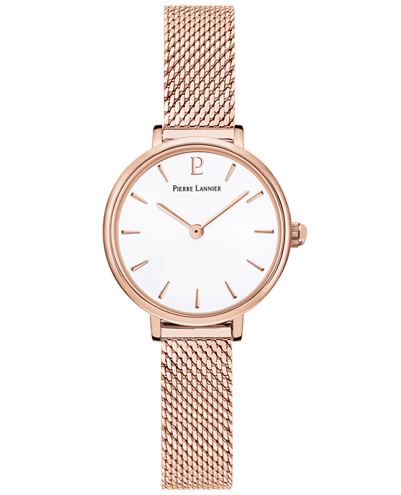 Женские кварцевые часы Pierre Lannier Nova 014J928. Центральные часовая и минутная стрелки. Белый циферблат. Круглый корпус выполнен из полированной нержавеющей стали с IP-покрытиемIP-покрытиеМетод ионного напыления. Демонстрирует повышенную устойчивость к истиранию, окислению и химическим веществам. Под воздействием высокого давления и температуры около 1500°C молекулы металла надёжно соединяются с частицами корпуса часов.. Стальной браслет выполнен в технике миланского плетения, раскладная застёжкаРаскладная застёжкаТакой тип застёжки используется только на браслетах из металла. Она никогда не раскрывается полностью, происходит разделение на 2 и более частей. Раскладывающая застёжка снизит вероятность потери часов к минимуму.. Прочное минеральное стеклоМинеральное стеклоМинеральное стекло представляет собой искусственно выращенный минерал кварца. Такое стекло отличается особой устойчивостью к повреждениям и царапинам. Уступает по некоторым качествам сапфировому стеклу., устойчивое к мелким механическим повреждениям. Водостойкость: 30 метров, позволит защитить корпус от случайных брызг или капель дождя.