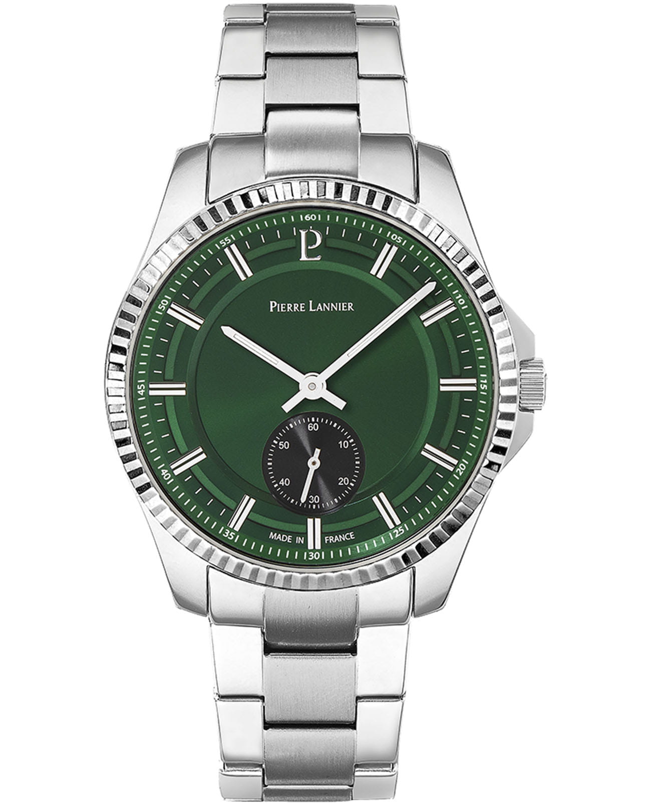 Мужские кварцевые часы Pierre Lannier 246G171 — это стильный аксессуар, сочетающий элегантность французского дизайна с надёжностью и функциональностью. Модель выполнена в круглой форме из нержавеющей стали, а её диаметр составляет 40 мм. Циферблат зелёного цвета дополнен центральными часовой и минутной стрелками, а секундная стрелка вынесена на малый циферблат, что делает его удобным для чтения. Защиту механизма обеспечивает минеральное стеклоМинеральное стеклоМинеральное стекло представляет собой искусственно выращенный минерал кварца. Такое стекло отличается особой устойчивостью к повреждениям и царапинам. Уступает по некоторым качествам сапфировому стеклу., устойчивое к мелким повреждениям. Заводная головка с защитой добавляет модели прочности и долговечности. Стальной браслет шириной 20 мм оснащён Раскладная застёжкаРаскладная застёжкаТакой тип застёжки используется только на браслетах из металла. Она никогда не раскрывается полностью, происходит разделение на 2 и более частей. Раскладывающая застёжка снизит вероятность потери часов к минимуму., обеспечивающей комфорт и надёжную фиксацию на запястье. Водонепроницаемость позволяет использовать часы в повседневных условиях — при мытье рук или под лёгким дождём. Эти часы станут универсальным аксессуаром для тех, кто ценит сочетание стиля, качества и французского мастерства — идеальный выбор для повседневной носки и деловых встреч.