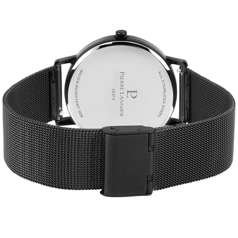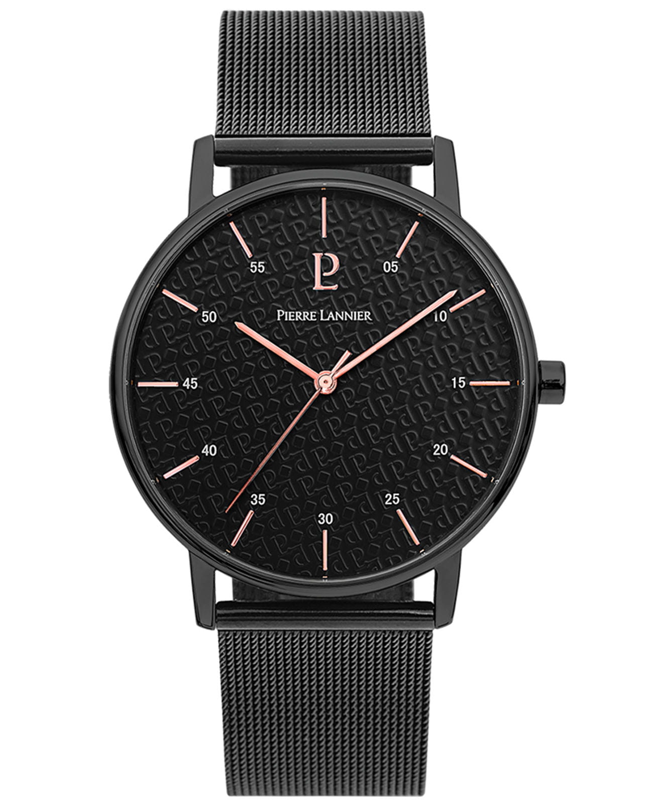 Мужские кварцевые часы Pierre Lannier Elegance Style 378B438. Минеральное стеклоМинеральное стеклоМинеральное стекло представляет собой искусственно выращенный минерал кварца. Такое стекло отличается особой устойчивостью к повреждениям и царапинам. Уступает по некоторым качествам сапфировому стеклу. устойчивое к мелким механическим повреждениям. Центральные часовая, минутная и секундная стрелки. Корпус выполнен из нержавеющей стали с PVD-покрытиемPVDУльтратонкое покрытие наносится в технике вакуумного напыления, сочетает в себе нитрид титана особой прочности со слоем золота или оксида хрома. Несёт в себе декоративную или защитную функцию.. Водостойкость: 50 метров, позволит защитить корпус от случайных брызг или капель дождя. Стальной браслет миланского плетения с раскладной застёжкойРаскладная застёжкаТакой тип застёжки используется только на браслетах из металла. Она никогда не раскрывается полностью, происходит разделение на 2 и более частей. Раскладывающая застёжка снизит вероятность потери часов к минимуму.. В комплекте дополнительный кожаный ремешок.