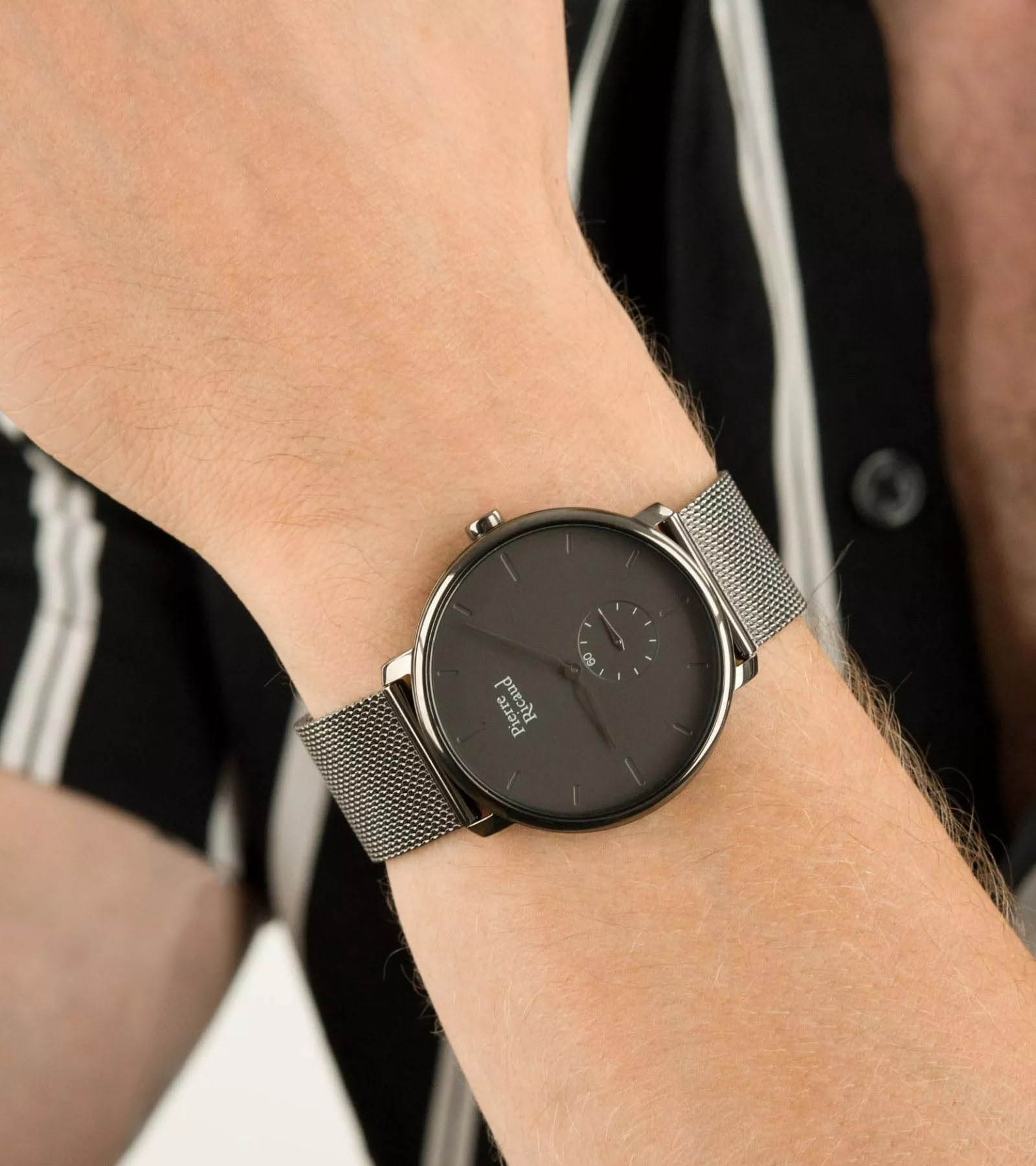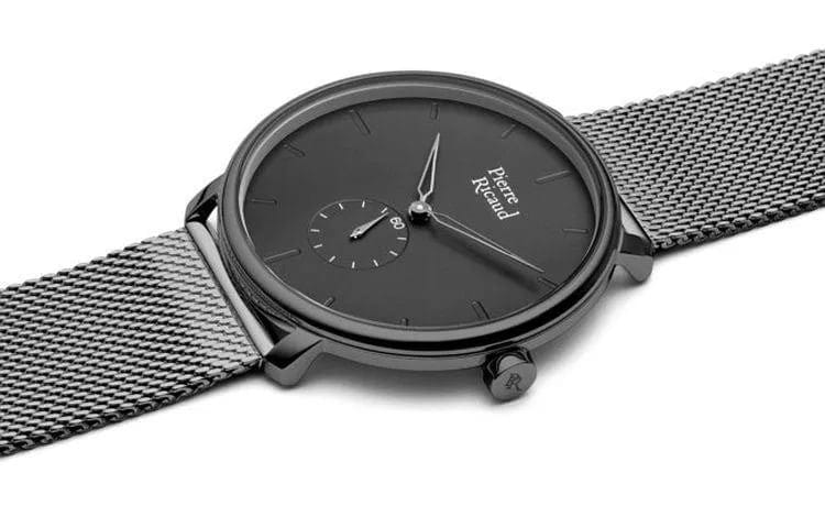 Мужские часы с минеральным стекломМинеральное стеклоМинеральное стекло представляет собой искусственно выращенный минерал кварца. Такое стекло отличается особой устойчивостью к повреждениям и царапинам. Уступает по некоторым качествам сапфировому стеклу. Pierre Ricaud P97168.S116Q, кварцевый механизм с высокой точностью. Класс водозащиты: 30 метров, позволит защитить корпус от случайных брызг или капель дождя. Корпус часов изготовлен из стали с IP-покрытиемIP-покрытиеМетод ионного напыления. Демонстрирует повышенную устойчивость к истиранию, окислению и химическим веществам. Под воздействием высокого давления и температуры около 1500°C молекулы металла надёжно соединяются с частицами корпуса часов.. Стальной браслет на раскладной застёжкеРаскладная застёжкаТакой тип застёжки используется только на браслетах из металла. Она никогда не раскрывается полностью, происходит разделение на 2 и более частей. Раскладывающая застёжка снизит вероятность потери часов к минимуму. с IP-покрытиемIP-покрытиеМетод ионного напыления. Демонстрирует повышенную устойчивость к истиранию, окислению и химическим веществам. Под воздействием высокого давления и температуры около 1500°C молекулы металла надёжно соединяются с частицами корпуса часов.. Вынесенная секундная стрелка.