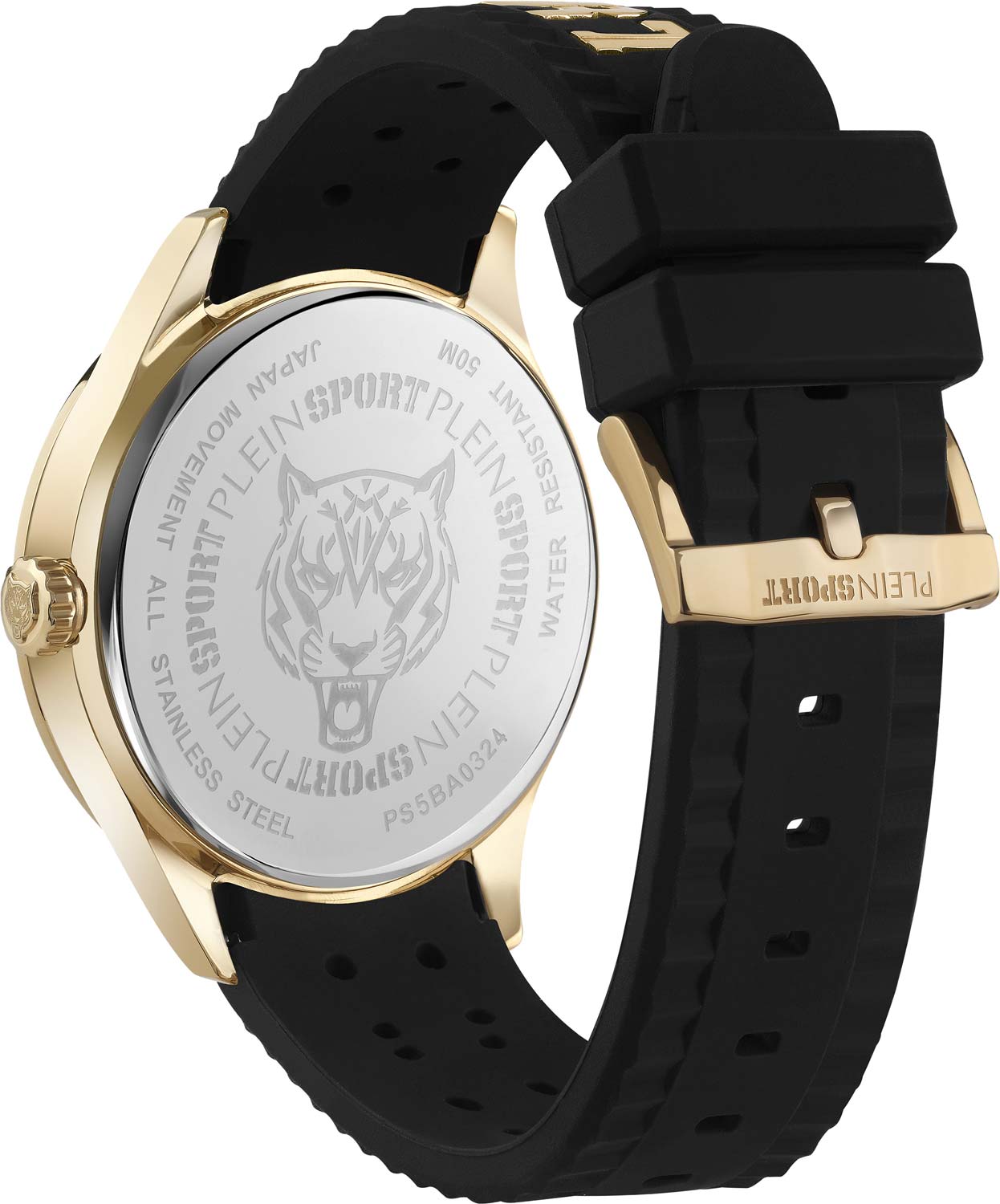 Дерзкий аксессуар со смелым, бунтарским дизайном будет с вами в любом приключении. Мужские кварцевые Plein Sport PS5BA0324 часы. Корпус часов изотовлен из стали с IP-покрытиемIP-покрытиеМетод ионного напыления. Демонстрирует повышенную устойчивость к истиранию, окислению и химическим веществам. Под воздействием высокого давления и температуры около 1500°C молекулы металла надёжно соединяются с частицами корпуса часов.. Циферблат дополнен паттерном ''след когтей''. Метки в виде штрихов, фирменное лого в виде тигра в положении 6 часов. Рифленая заводная головка с защитой. Класс водозащиты: 50 метров, позволит защитить корпус от случайных брызг или капель дождя. Силиконовый ремешок на стандартной застежке.