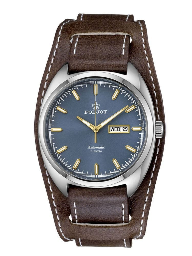 Poljot 8205.241277 — элегантные механические часы с автоподзаводом, сочетающем силу и изысканность. Корпус из нержавеющей стали подчеркивает надёжность и лаконичность дизайна, а глубокий циферблат с золотистыми стрелками придаёт модели благородный акцент. Проверенный японский механизм Miyota 8205 обеспечивает точность хода и долговечность, а плавное движение секундной стрелки подчёркивает качество сборки. Метки и стрелки с люминесцентным покрытиемЛюминесцентное покрытиеПозволяет считывать показания времени в темноте. Производители наносят на стрелки, часовые индексы, безель или поверхность циферблата светонакопительный состав, дающий холодное свечение. обеспечивают отличную читаемость при любом освещении, а окно даты добавляет практичности. Прочное минеральное стеклоМинеральное стеклоМинеральное стекло представляет собой искусственно выращенный минерал кварца. Такое стекло отличается особой устойчивостью к повреждениям и царапинам. Уступает по некоторым качествам сапфировому стеклу. защищает циферблат от царапин, а ремешок из натуральной кожи завершает утончённый облик модели. Poljot — гармония классики и современной механики, созданная для тех, кто ценит традиции и индивидуальность в каждой детали. В комплекте дополнительный ремешок с напульсником.