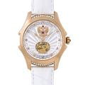 , что придаёт ей благородный внешний вид и устойчивость к царапинам. Циферблат белого цвета с открытым окном баланса и инкрустирован кристаллами Swarovski, подчёркивающими изысканность и внимание к деталям. Защиту циферблата обеспечивает минеральное стеклоМинеральное стеклоМинеральное стекло представляет собой искусственно выращенный минерал кварца. Такое стекло отличается особой устойчивостью к повреждениям и царапинам. Уступает по некоторым качествам сапфировому стеклу., устойчивое к повседневным нагрузкам и обеспечивающее хорошую прозрачность. Часы оснащены механизмом с автоподзаводом, разработанным японской компанией Miyota, что гарантирует точность и надёжность. Кожаный ремешок шириной 18 мм дополнен стандартной застёжкой, обеспечивающей комфорт и удобство при ношении. Водонепроницаемость позволяет использовать часы в условиях случайных брызг или капель дождя. Эти часы станут универсальным аксессуаром для тех, кто ценит сочетание стиля, качества и элегантности — идеальный выбор для женщин, которые следят за своим имиджем и предпочитают выделяться.