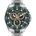 Мужские наручные часы-хронографХронографФункция позволяет измерять отрезки времени с особой точностью: часы, минуты, секунды. Верным признаком хронографа является наличие на циферблате 3 дополнительных окошек-счётчиков. Quantum HNG1062.370, кварцевый механизм с высокой точностью. Минеральное стеклоМинеральное стеклоМинеральное стекло представляет собой искусственно выращенный минерал кварца. Такое стекло отличается особой устойчивостью к повреждениям и царапинам. Уступает по некоторым качествам сапфировому стеклу. устойчивое к появлению царапин, обладающее высокой прозрачностью. Класс водозащиты: 100 метров, позволит плавать, нырять и заниматься другими водными видами спорта. Корпус часов изготовлен из нержавеющей стали. Стрелки с люминесцентным покрытиемЛюминесцентное покрытиеПозволяет считывать показания времени в темноте. Производители наносят на стрелки, часовые индексы, безель или поверхность циферблата светонакопительный состав, дающий холодное свечение.. Стальной браслет на раскладной застёжкеРаскладная застёжкаТакой тип застёжки используется только на браслетах из металла. Она никогда не раскрывается полностью, происходит разделение на 2 и более частей. Раскладывающая застёжка снизит вероятность потери часов к минимуму..