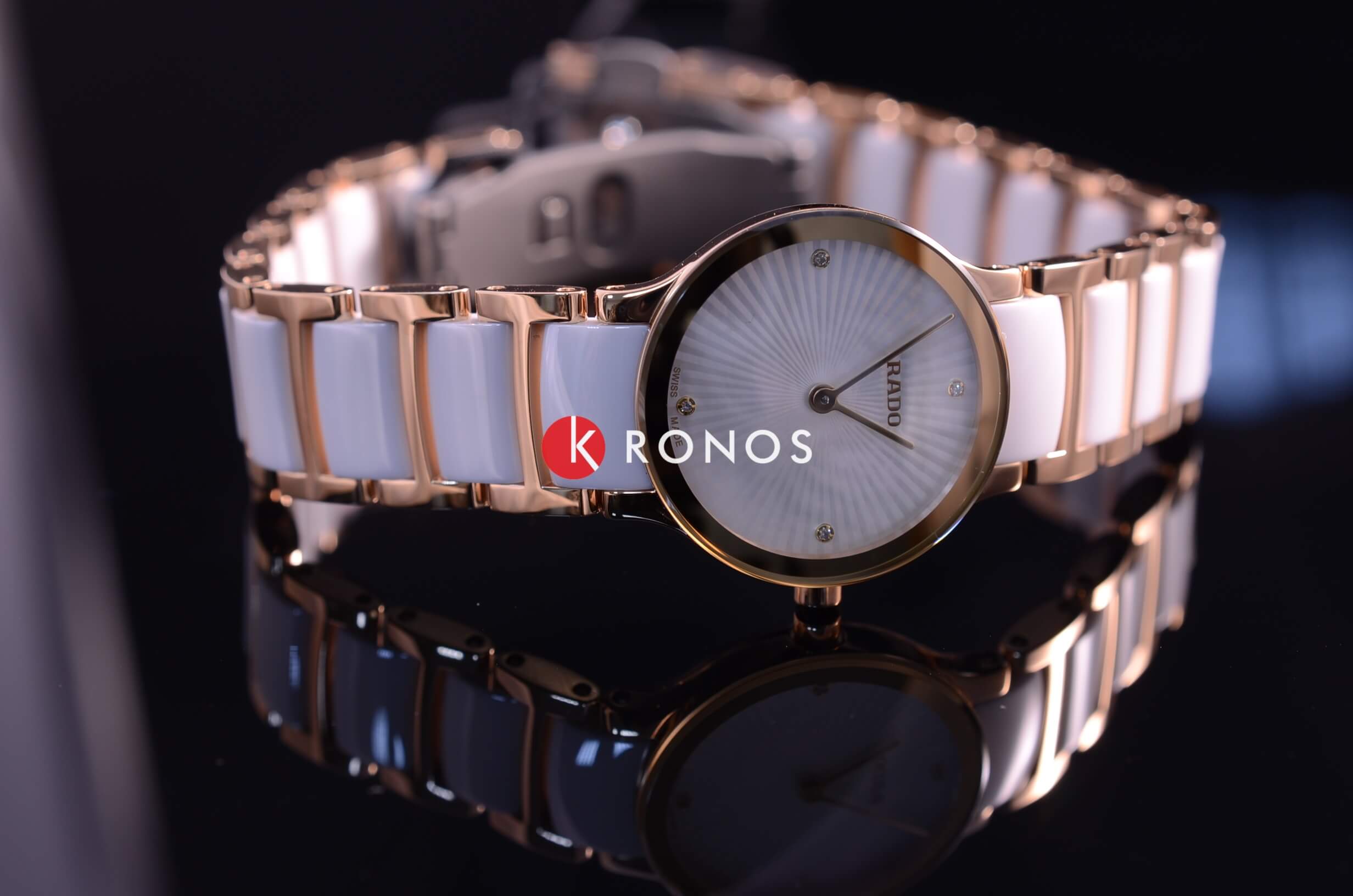 Изящная модель отличается «морским» дизайном – узор на перламутровом циферблате имитирует раковину моллюска. Часовые индексы заменяют 4 бриллианта в 0,008 карат, придавая аксессуару веяние роскоши. Стильно смотрится браслет из хирургической стали 316L с PVD-покрытиемPVDУльтратонкое покрытие наносится в технике вакуумного напыления, сочетает в себе нитрид титана особой прочности со слоем золота или оксида хрома. Несёт в себе декоративную или защитную функцию. и вставок из высокотехнологичной керамикиВысокотехнологичная керамикаИнновационный запатентованный Rado материал с гладкой или матовой поверхностью. Керамика за счёт кристаллической структуры обладает повышенной устойчивостью от возникновения царапин. Материал способен принимать температуру тела человека, обеспечивая невероятный комфорт при ношении.. Швейцарский кварцевый калибр ETA 280.002. Сапфировое стекло. Водостойкость 3 бар. . Диаметр корпуса: 23 мм.