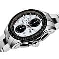 Классический хронографХронографФункция позволяет измерять отрезки времени с особой точностью: часы, минуты, секунды. Верным признаком хронографа является наличие на циферблате 3 дополнительных окошек-счётчиков. с элементами спортивного дизайна идеально подойдёт к образу солидного и делового мужчины. Винтажным элементом стал оригинальный дизайн «panda-style». Серебристо-чёрная расцветка позволяет носить часы при любых обстоятельствах. Модель оснащена швейцарским автоматическим механизмом ETA A05.H21, запас хода которого увеличен до 54 часов. Скелетонизированная задняя крышка корпуса. Стекло из сапфира с антибликовым покрытием. Корпус и браслет из стали 316L с антикоррозионными свойствами. Чёрный безельБезельВнешний ободок, закрепляющий стекло. В спортивных часах так называется поворотное кольцо с делениями на циферблате, выполняет роль таймера – замеряет отрезки времени на шкале. Неподвижный безель – элемент декора. Однонаправленно вращающийся безель на дайверских часах позволяет фиксировать моменты погружения и выныривания на поверхность. из высокотехнологичной керамикиВысокотехнологичная керамикаИнновационный запатентованный Rado материал с гладкой или матовой поверхностью. Керамика за счёт кристаллической структуры обладает повышенной устойчивостью от возникновения царапин. Материал способен принимать температуру тела человека, обеспечивая невероятный комфорт при ношении.. Люминесцентная подсветкаЛюминесцентное покрытиеПозволяет считывать показания времени в темноте. Производители наносят на стрелки, часовые индексы, безель или поверхность циферблата светонакопительный состав, дающий холодное свечение. стрелок. Водонепроницаемость 100 метров. Секундомер, отображение даты, шкала тахиметраТахиметрРазмеченная шкала, располагается на ободке или безеле часов. Тахиметр позволяет рассчитать скорость на определённом участке пути, расстояние измеряется в километрах или милях.. . Диаметр корпуса: 44 мм.