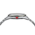 Модель относится к премиальному сегменту, стильно смотрится синий узорчатый циферблат с контрастными элементами. Нижняя часть дополнена эмблемой в виде морских коньков, в верхней находится узнаваемый логотип Rado. Часы сделаны из нержавеющей стали 316L, как и первые аксессуары из линейки Golden Horse, отличием стал безельБезельВнешний ободок, закрепляющий стекло. В спортивных часах так называется поворотное кольцо с делениями на циферблате, выполняет роль таймера – замеряет отрезки времени на шкале. Неподвижный безель – элемент декора. Однонаправленно вращающийся безель на дайверских часах позволяет фиксировать моменты погружения и выныривания на поверхность. из плазменной керамикиВысокотехнологичная плазменная керамикаИнновационный материал, технология запатентована. Выплавление керамики осуществляется в печи при 20 000 °C, белоснежный материал под воздействием ультравысокой температуры приобретает уникальный блеск, присущий металлам.. Корпус защищает автоматический калибр ETA C07.611 с резервом хода 80 часов от ударов и повреждений. Задняя крышка прозрачная. Сапфировое стекло с обработкой «антиблик». Водостойкость до 5 бар. Отображение текущего числа. Диаметр корпуса: 41,8 мм.